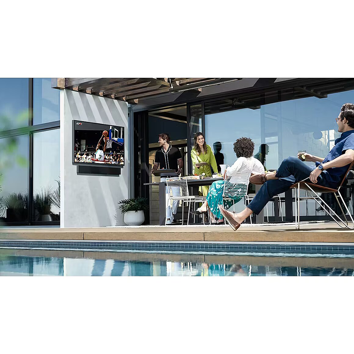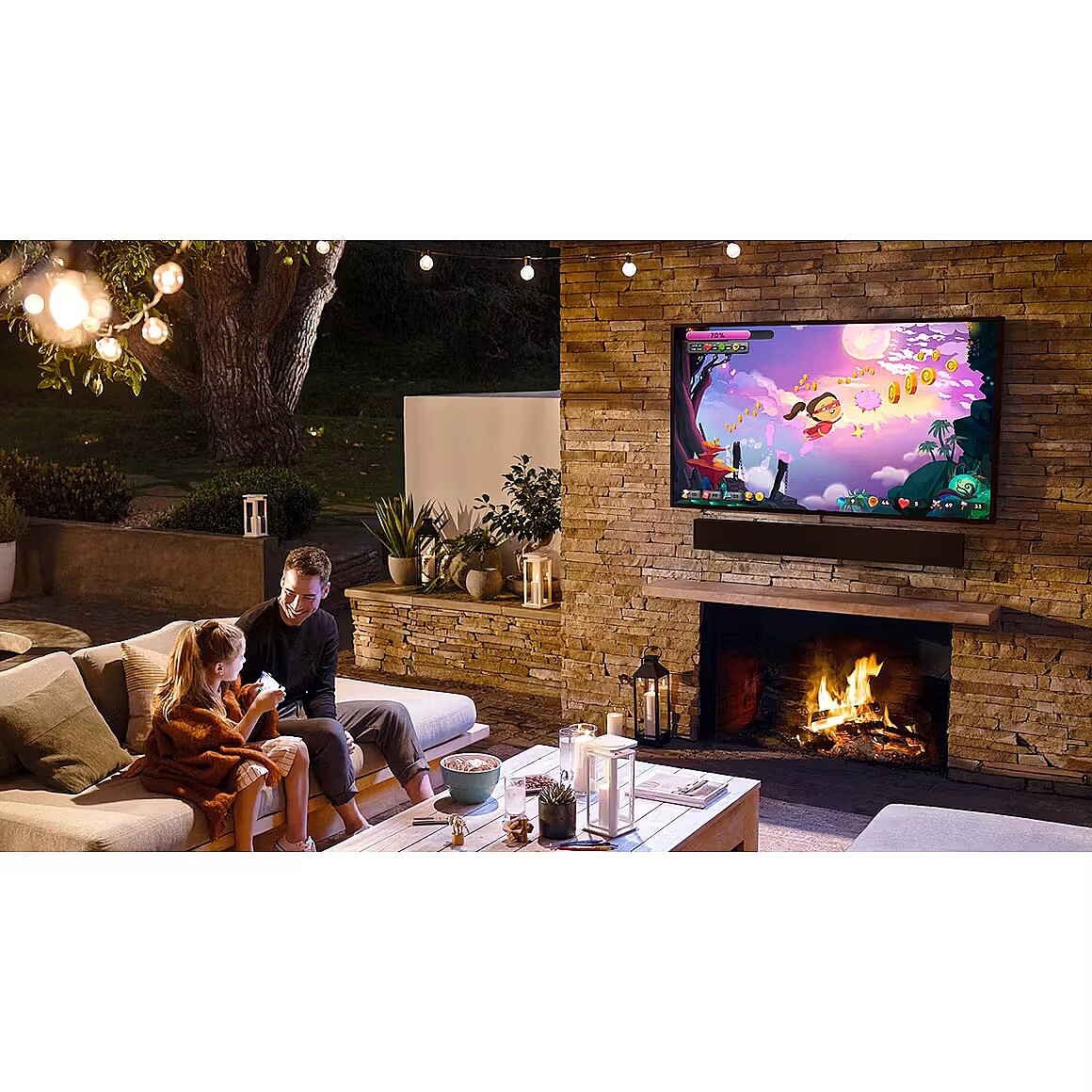 LongDesc - Designed for the OutdoorsAudio optimized with the outdoors in mind. Pair with The Terrace TV for clear sound and picture quality, even while outside.Clear outdoor soundOutdoor Optimized SoundThe Terrace Soundbar provides high-quality audio powerful enough for the outdoors and includes a center channel (3.0CH) for crystal clear dialogue.Built to endure the elementsWeather-Resistant Durability IP55 RatedResistant to extreme temperatures, and is best in class IP55-rated for weather resistant durability against water and dust.Powerful Built-In WooferBuilt-in Woofer (210W)Experience 210 watts of sound with the deep rich bass of the built-in woofer.Analyzes & autocorrects distortionDistortion CancellingDistortion Cancelling technology reduces distortion before it happens, for deep bass and dynamic audio.Cast audio from your devicesWi-Fi & Bluetooth®️ StreamingStream music by connecting wirelessly to other devices via Wi-Fi and BluetoothSync your TV & speaker easilyWireless TV ConnectionSound optimized for each sceneAdaptive SoundThe Terrace Soundbar analyzes your content to automatically deliver optimized sound based on each scene, letting you hear speech clearly at the lowest volumes.Music comes alive with your voiceWorks With AlexaEnjoy your Soundbar hands-free using voice control through your Alexa enabled device*. Ask Alexa to play something by simply saying the title or a few lines of the song's lyrics. No matter what kind of music you're in the mood for, Alexa will find it.Experts in sound innovationSamsung Audio LabTested and tuned at the California Audio Lab, where our world-class audio engineers apply the advanced acoustic technologies and cutting-edge computer modeling to give you perfectly balanced, room-filling sound.Connect with SmartThingsSmartThings App SupportTake connected living outside. Add The Terrace Soundbar to your network with the SmartThings app for greater control over your audio throughout your smart home.A world of sound with one remoteSamsung OneRemoteOne remote is all you need. Control key soundbar functions like power, volume, and even sound effects with the Samsung TV remote.Incredible sound wherever you areWide Range TweeterEvery spot is the sweet spot. Hear consistently clear sound with Samsung's wide range tweeter.Easy Installation w/ KitWall & TV Mount Kit IncludedNo need for professional installation. With the included mounting kit, you'll be able to set up your speaker on the wall or neatly below The Terrace TV for a seamless sound experience.