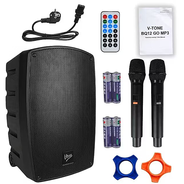 productName - V-TONE BQ12 GO MP3 - active 8" battery-powered speaker with wireless microphone and remote control, black