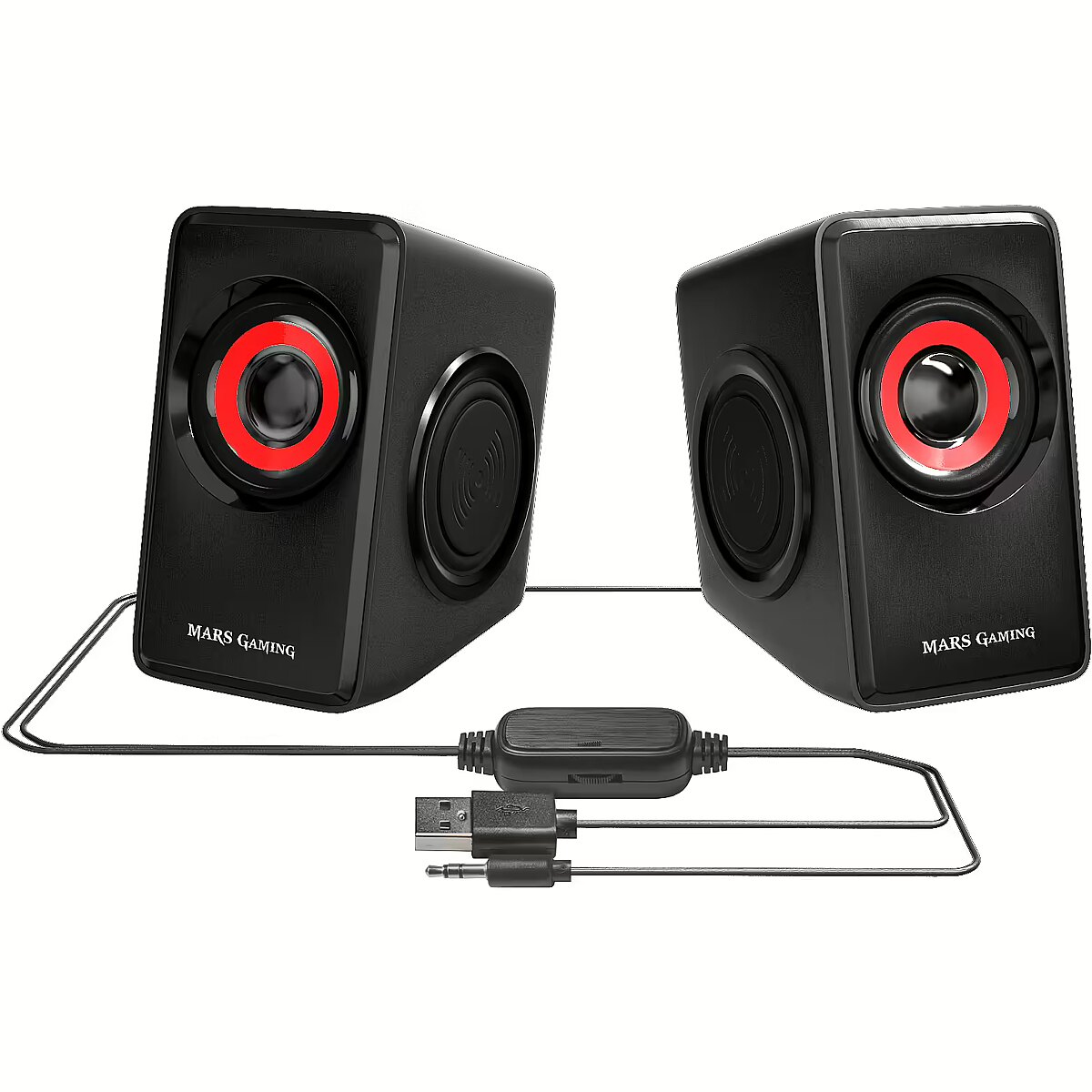 LongDesc - Dive into gaming with the MS1. Compact and equipped with 6 sound drivers and 10W of power, these speakers will cover all your needs.Total gaming designThe MS1's careful design in glossy red and black makes these speakers a totally gaming option, with an elegant and aggressive image.Compact sizeThe small size and USB power supply will allow you to take them with you and enjoy your gaming sessions wherever you want, without losing the excitement of the game with the best sound.Passive driversThe new MS1 speakers feature an innovative sound system with 6 drivers, 2 active and 4 passive, which will turn your gaming sessions into a total gaming experience thanks to their impressive bass. Enjoy spectacular sound from small speakers!Gaming speakersThe MS1 are the first speakers in the Mars Gaming range designed by and for gamers. With a small size, perfect for smaller desks, they offer a surprising power of 10W that will make you experience total immersion in the game.