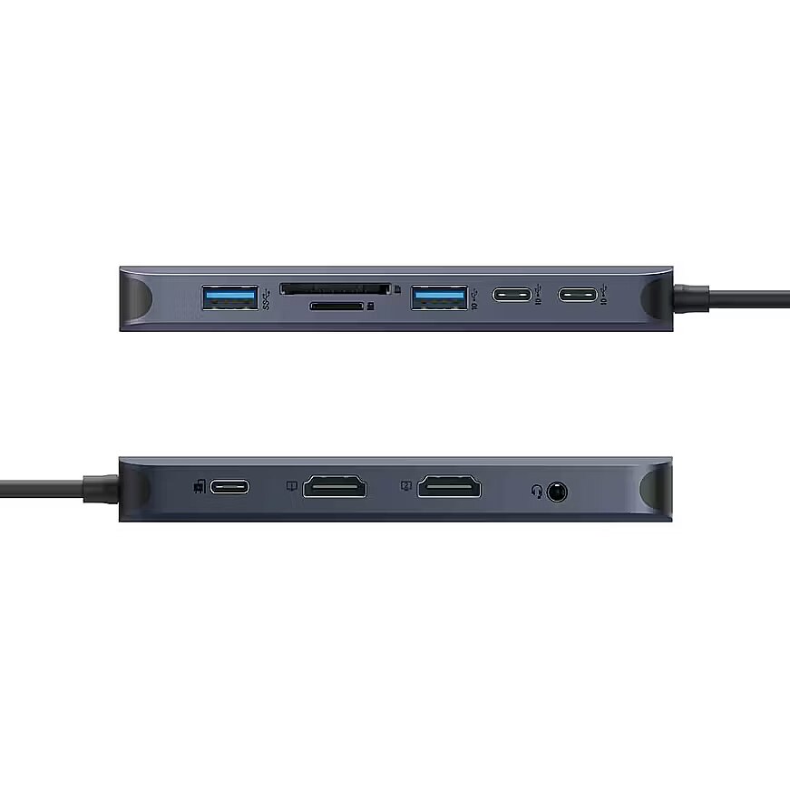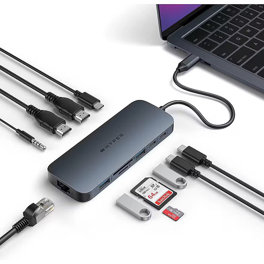 LongDesc - Introducing the HyperDrive® Next 11 Port USB-C Hub - the ultimate connectivity solution for creators, editors, photographers, and more. With dual 4K 60 Hz monitor support for PC and Chromebook™, 11 ultra-fast ports, and lightning-fast data transfers, unleash your creative potential anywhere. Experience 2X faster file transfers using the 10 Gbps USB ports and 3X faster photo and video transfers with microSD and SD 4.0. Benefit from 40% more power with PD 3.1 140 W power pass-through, ensuring efficient charging. Maximise productivity with the HyperDrive® Next 11 Port Dual 4K USB-C Hub.Dual extended 4K 60 Hz monitor support for PC and ChromebookEnhance your productivity and multitasking capabilities by providing a spacious and immersive workspace, allowing users to simultaneously view and work on multiple high-resolution content, such as videos, images, documents, and applications, with smooth and crisp visuals.Transfer data at 2X speeds up to 10 Gbps USB 3.1Enables lightning-fast data transfer, allowing users to move large files, backup data, and sync devices in a fraction of the time compared to traditional USB connections, increasing productivity and efficiency.Transfer photos and video at 3X speeds with 312 MB/s SD and microSD 4.0Provides significant time savings for video editing and photography workflows, as it allows for ultra-fast and efficient transfer of high-resolution images and videos, enabling seamless editing, quicker file backups, and accelerated post-production processes.Fast and reliable Gigabit EthernetProvides high-speed and reliable wired internet connectivity, allowing for faster data transfers, seamless video streaming, and improved online gaming experiences.Wired headphone and microphone supportReliable and high-quality 3.5mm audio jack combo allows users to enjoy immersive sound experiences, communicate clearly in online meetings or gaming sessions, and utilise professional-grade microphones for recording or streaming, providing enhanced audio capabilities and versatility.EcoSmart™ sustainability without compromiseFaster speeds and better for the planet with 100% recycled Aluminium and 85% recycled plastic.
