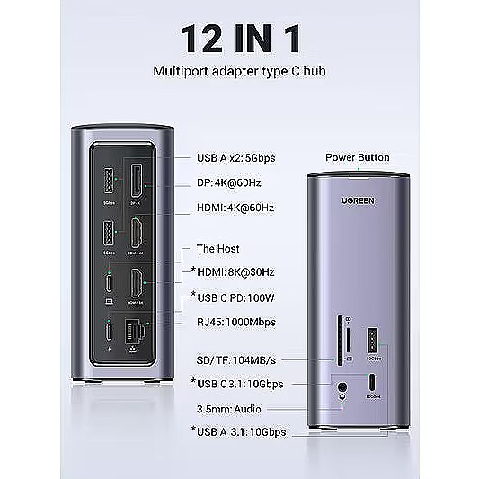 Title - Ugreen USB-C Docking Station 12-in-1 Wired Silver