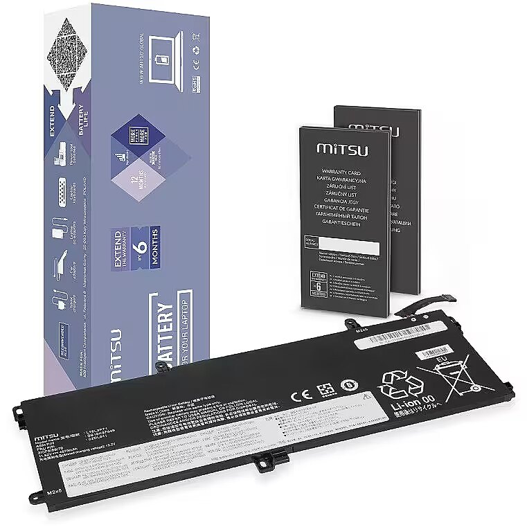 Description - Wysoka jakość w rozsądnej cenie, bezpieczeństwo i ekologia to cechy baterii MITSU, które doceniły już tysiące Europejczyków, głównie w Polsce, Czechach i na Słowacji. Jest ona efektem połączenia najlepszych komponentów z dbałością o każdy etap procesu produkcji, wspartą nieustanną kontrolą jakości, a także naciskiem na bezpieczeństwo urządzenia. MITSU to: Wysokiej klasy, sprawdzone, ekologiczne ogniwa litowo-jonowe klasy A, Rzeczywista deklarowana pojemność, Znacznie wolniejszy spadek nominalnej pojemności w porównaniu do innych tańszych zamienników, Niska podatność na samoistne rozładowania, Brak efektu pamięci, Fabryczne zabezpieczenia przed przeładowaniem i głębokim rozładowaniem, a także przed przepięciem OVP, przegrzaniem OTP, zwarciem SCP i przeciążeniem prądowym OCP, Niezawodny i długotrwały czas między kolejnymi cyklami ładowania, 6-stopniowa kontrola jakości. Kupując ten akumulator do laptopa masz także pewność, że jednocześnie dbasz o środowisko naturalne. Producent ściśle współpracuje z organizacjami zajmującymi się szeroko pojętą edukacją ekologiczną, wspierającymi selektywną zbiórkę oraz maksymalny odzysk odpadów. Baterie MITSU to produkty opatrzone certyfikatami CE, ROHS oraz ISO9001 Zamienne z modelami 02DL011 02DL012 02LD012 5B10W13913 5B10W13914 5B10W51823 5B10W51831 5B10W51832 L18L3P71 L18M3P71 L18M3P74 L18S3P71 SB10K97649SB10K97650 SB10T83156 Kompatybilne z Lenovo seria Thinkpad P15s P15s 20T4 P15s 20T5 P15s Gen 2 P15s Gen 2 (20W600GTMH) P15s Gen 2 20W6 P15s Gen 2 20W7 P53s P53s 20N6 P53s 20N7 T15 T15 20S6 T15 20S7 T15 Gen 2 T15 Gen 2 (20W400J8MB) T15 Gen 2 (20W400JAMB) T15 Gen 2 (20W400QNMB) T15 Gen 2 (20W400QSGE) T15 Gen 2 (20W400R2MH) T15 Gen 2 (20W400RSGE) T15 Gen 2 (20W400RXGE) T15 Gen 2 (20WNS15003) T15 Gen 2 20W4 T590 T590 20N4 T590 20N5