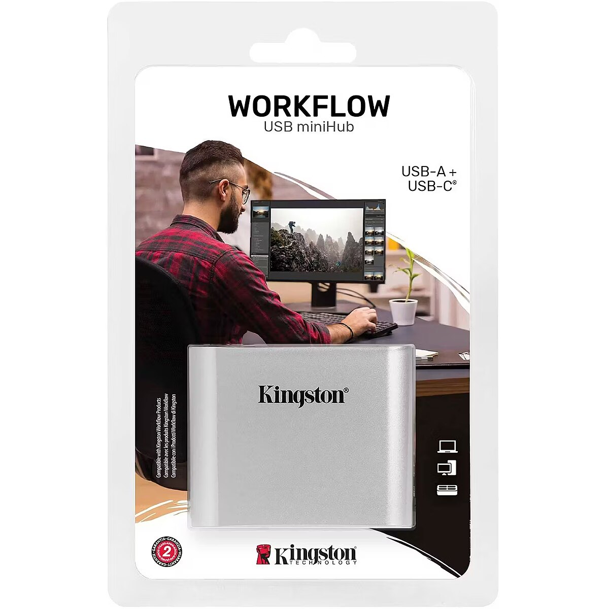 LongSummaryDescription - Kingston Technology USB 3.2 Gen 1 Workflow 5G USB-A and USB-C miniHub. Host interface: USB 3.2 Gen 1 (3.1 Gen 1) Type-C, Hub interfaces: USB 3.2 Gen 1 (3.1 Gen 1) Type-A, USB 3.2 Gen 1 (3.1 Gen 1) Type-C. Data transfer rate: 5000 Mbit/s, Product colour: Silver, Country of origin: China. Windows operating systems supported: Windows 10, Windows 10 Education, Windows 10 Education x64, Windows 10 Enterprise, Windows 10..., Mac operating systems supported: Mac OS X 10.15 Catalina, Mac OS X 10.15.3 Catalina, Mac OS X 11.0 Big Sur, Mac OS X 12.0 Monterey,.... Width: 50 mm, Depth: 62.9 mm, Height: 16.9 mm. Package width: 114.3 mm, Package depth: 39.9 mm, Package height: 177.8 mm