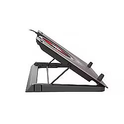 LongDesc - Genesis Oxid 550 is a pad with a large cooling surface made of high-quality aluminum, which additionally enhances heat dissipation. Its construction ensures perfect cooling of both larger laptops up to 17.3” and smaller ones, improving significantly their operation.BET ON PERFORMANCE WITH THE GENESIS OXID 550Long evening gaming sessions cause your laptop to overheat, and this prevents you from continuing to play? The Genesis Oxid 550 cooling stand will not only cool down your computer's components, but will also surprise you with its stylish design and red lighting that will make any workstation unique.LOW TEMPERATURE? IT'S POSSIBLEThe Genesis Oxid 550 stand is designed for laptops up to 17.3". Such large models can rest safely on its surface thanks to additional rubber protections. They prevent the laptop from slipping and unwanted falls.5 POWERFUL FANSThe Genesis Oxid 550's cooling system based on four smaller fans bringing warm air out from under the laptop and one large fan bringing in cool air. By distributing them over the entire surface, your laptop is cooled evenly. This is also helped by the front aluminum panel.PHONE ALWAYS WITH YOUThe Genesis Oxid 550 features a removable phone holder that can be mounted on the right or left side of the stand. So if you want to stay in touch with the world during gameplay or keep track of important information, your phone will always be close at hand.ANGLE ADJUSTMENTThe Oxid 550 is also about ergonomics. Five levels of angle adjustment give you the ability to position your laptop in the most comfortable position for you. Placing the laptop at the right height will relieve neck strain, eliminate eyestrain and allow you to maintain proper posture for long hours.UNIQUE DESIGNFunctionality is not everything. The Oxid 550 stand is also a great design. Black and red elements give it an aggressive look. There was also fan backlighting, which will make the Oxid 550 look unique on your desk.