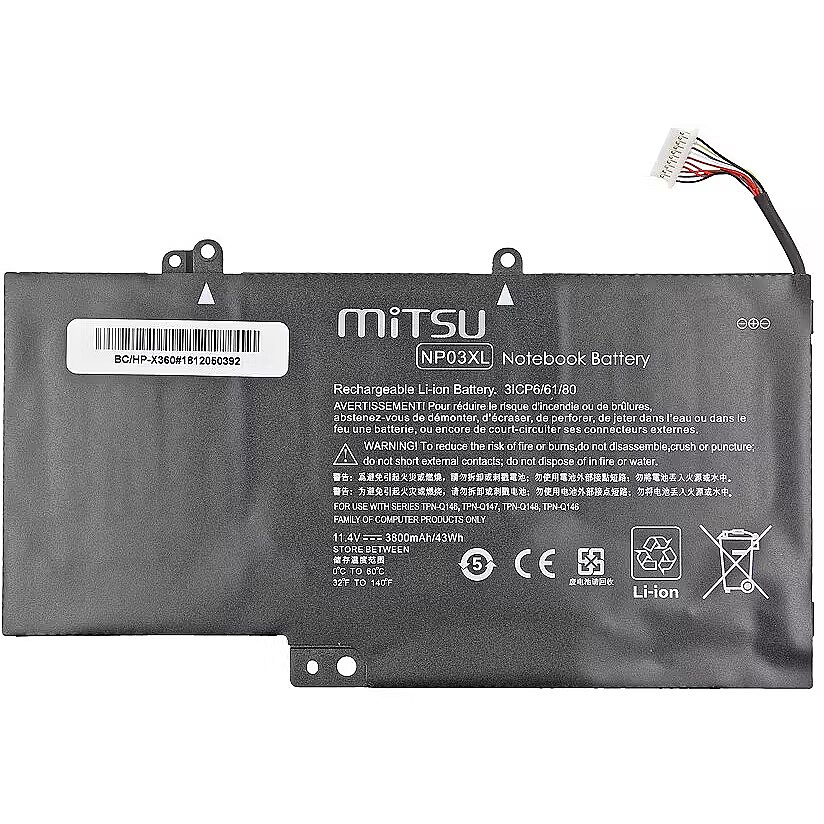 MITSU is: High class, proven, class A lithium-ion ecological cells The actual declared capacity Significantly slower decline in nominal capacity compared to other cheaper alternatives Low susceptibility to spontaneous discharge No memory effect Factory protection against overcharging and deep discharging, as well as against OVP overvoltage, overheating of OTP, short circuit of SCP and overload of OCP Reliable and long-lasting time between successive charging cycles 6-step quality control By purchasing this battery for your laptop, you can also be sure that you care for the environment at the same time. The producer cooperates closely with organizations dealing with broadly understood environmental education, supporting selective collection and maximum waste recovery.
