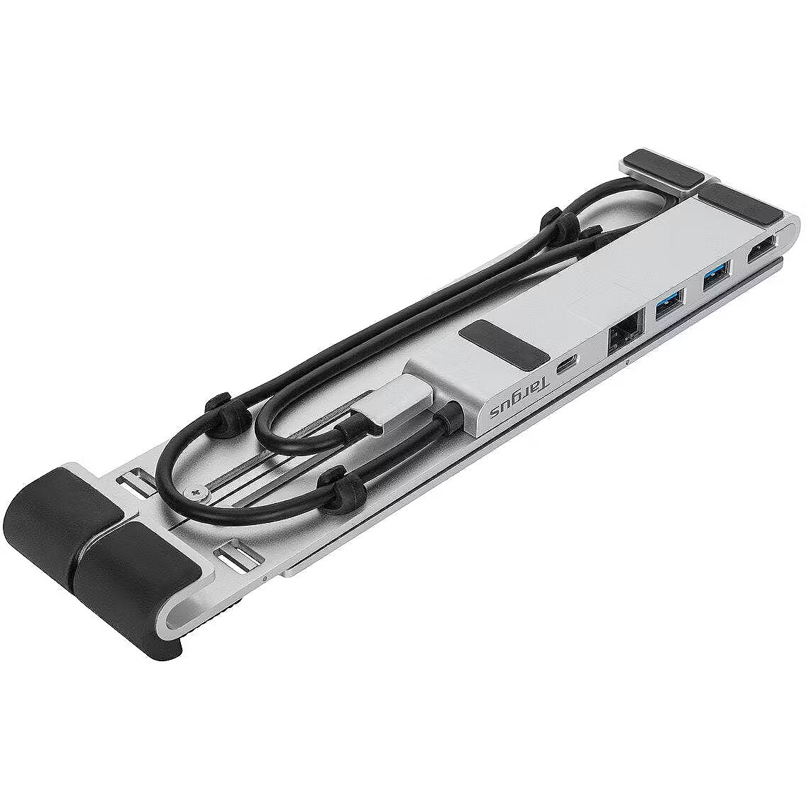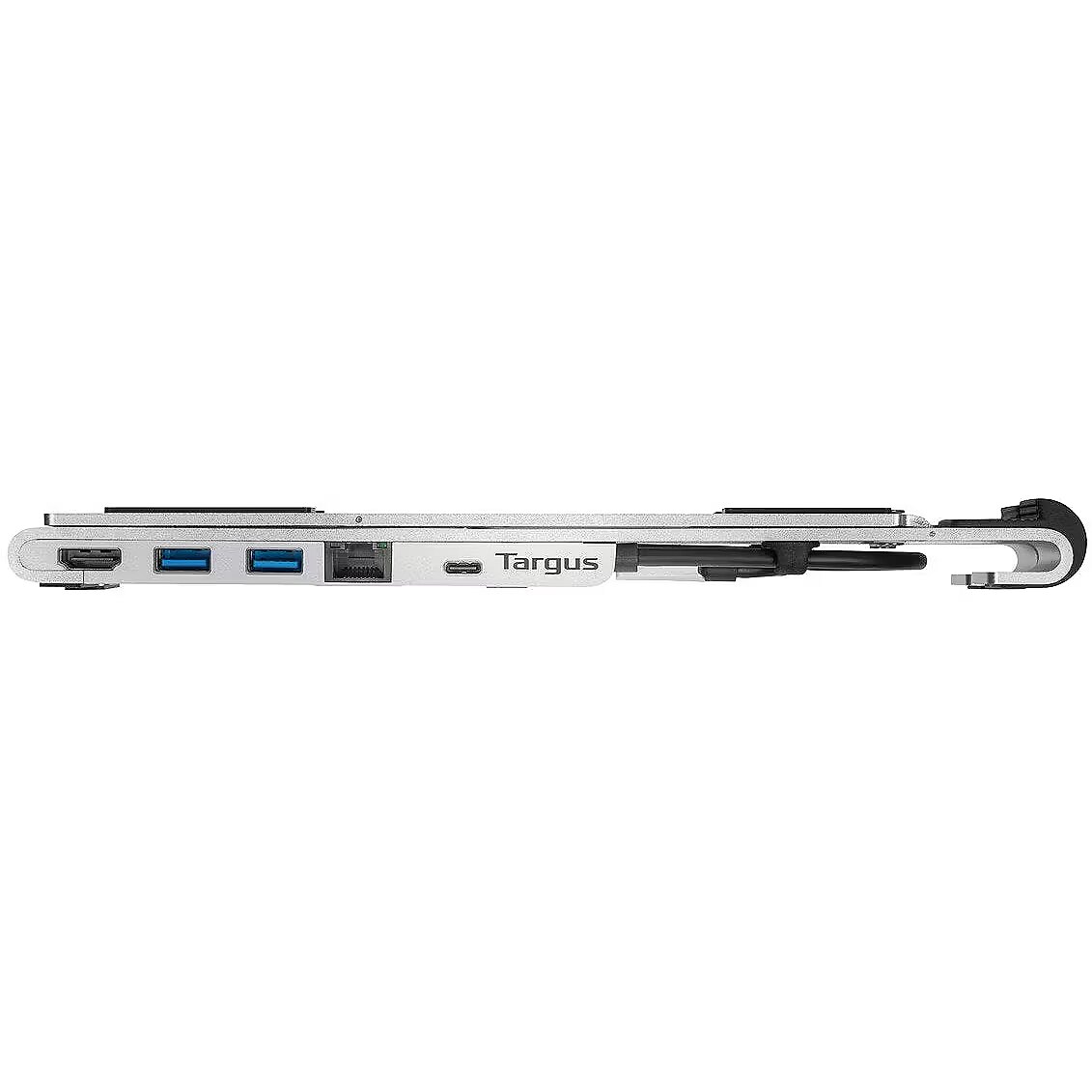 LongSummaryDescription - Targus AWU100005GL. Product type: Laptop stand, Product colour: Silver, Material: Aluminium. Host interface: USB 3.2 Gen 1 (3.1 Gen 1) Type-C, USB data transfer rates: 5000 Mbit/s, USB Power Delivery up to: 100 W. Width: 62 mm, Depth: 260 mm, Height: 27 mm. Cables included: USB Type-C
