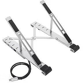LongDesc - Stylish and durable, this Targus® Portable Stand with Integrated Dock is made with aluminum that is designed to be foldable to an ultra-compact size (25.3 x 6 x 1.83 cm), perfectly stowed within a Targus® backpack or laptop case of the modern mobile worker who's looking to transform their laptop into a workstation at multiple workspaces.Robust construction with aluminium not only offers a sturdy platform for your laptop, it also has high heat reduction characteristics to help prevent your device from overheating. Plus it can be adjusted 5 different positions so that your laptop screen stays in your eye line for the most optimum working posture to reduce back and neck strains.Ensure to maximise your productivity wherever you work and simply connect your laptop to an extra monitor up to 4K 30p, plus other peripherals with one single USB-C cable.The Targus® 100W PD GaN Wall Charger (APA109GL) is the perfect companion for this stand with integrated dock, delivering up to 100W power when connected to the USB-C port under the stand, the power then shared between the Laptop via USB-C cable and other connected devices or accessories.Keep organised whilst working on the go and centrally connect your keyboard, mouse, external flash drive or smart devices via 2x USB-A and 1 USB-C data ports that all support up to 5 Gbps data transfer rate, ideal for mobile working in multiple locations.