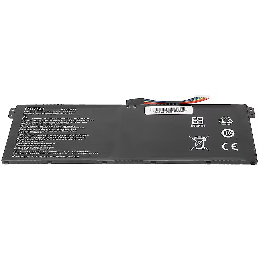 Description - Mitsu Battery for Acer Aspire 3 A314, A315 4800 mAh (36 Wh) 7.4 - 7.6 Volt - 5BM728 Model BC/AC-A315 High quality at a reasonable price, safety and ecology are the features of MITSU batteries that have already been appreciated by thousands of Europeans, mainly in Poland, the Czech Republic and Slovakia. It is the result of combining the best components with attention to every stage of the production process, supported by constant quality control, as well as an emphasis on device safety. MITSU is: High-end, proven, ecological class A lithium-ion cells Actual declared capacity Much slower decline in nominal capacity compared to other cheaper alternatives Low susceptibility to spontaneous discharge No memory effect Factory protections against overcharge and deep discharge, as well as against overvoltage OVP, overheating OTP, SCP short circuit and OCP current overload Reliable and long-lasting time between recharges 6-step quality control. By buying this laptop battery, you can also be sure that you care for the environment at the same time. The manufacturer closely cooperates with organizations dealing with broadly understood environmental education, supporting selective collection and maximum recovery of waste. MITSU batteries are CE, ROHS and ISO9001 certified products. Replaces batteries: AP16M5J, Model BC/AC-A315 Fits: Acer aspire 3 series A314-21, A314-21-43SJ, A314-21-65M7, A314-21-91V1, A314-21-93TJ, A314-21-98MH, A314-31, A314-31-C08A, A314-31-C0LU, A314-31-C0SG, A314-31-C0T4, A314-31-C0V3, A314-31-C12Q, A314-31-C1WF, A314-31-C22K, A314-31-C22V, A314-31-C29P, A314- 31-C2LR, A314-31-C2NM, A314-31-C2PU, A314-31-C2TV, A314-31-C2UD, A314-31-C2UX, A314-31-C34Q, A314-31-C38R, A314-31- C3X0, A314-31-C4VM, A314-31-C4XU, A314-31-C58V, A314-31-C5GA, A314-31-C6CE, A314-31-C6VG, A314-31-C7CY, A314-31-C7GM, A314-31-C8HP, A314-31-C91T, A314-31-C955, A314-31-C9E2, A314-31-C9FR, A314-31-P03M, A314-31-P0QC, A314-31-P1BU, A314- 31-P25A, A314-31-P2HJ, A314-31-P2ZB, A314-31-P3FZ, A314-31-P3H1, A314-31-P3JM, A314-31-P3M9, A314-31-P642, A314-31- P6AB, A314-31-P79Y, A314-31-P8VG, A314-31-P9B4, A314-32, A314-32-C087, A314-32-C09W, A314-32-C0HQ, A314-32-C129, A314- 32-C19D, A314-32-C1GE, A314-32-C2TE, A314-32-C2VP, A314-32-C3D3, A314-32-C3HA, A314-32-C3X0, A314-32-C4F0, A314-32- C4H0, A314-32-C52Q, A314-32-C53G, A314-32-C7YV, A314-32-C83Q, A314-32 -C8Z2, A314-32-C90C, A314-32-C9M8, A314-32-P05T, A314-32-P182, A314-32-P1EV, A314-32-P2MA, A314-32-P2QG, A314-32-P2TC , A314-32-P3BZ, A314-32-P3SL, A314-32-P4AS, A314-32-P4NV, A314-32-P5BH, A314-32-P5G3, A314-32-P68T, A314-32-P6CE, A314 -32-P6CZ, A314-32-P7T4, A314-32-P8AP, A314-32-P9GF, A314-32-P9JN, A314-33, A314-33-C06J, A314-33-C0RS, A314-33-C1V8 , A314-33-C3A1, A314-33-C52Q, A314-33-C679, A314-33-C70T, A314-33-C83M, A314-33-C8UB, A314-33-C96M, A314-33-C99V, A314 -33-P65Q, A314-33-P6XT, A314-33-P918, A314-41, A314-41-94GC, A314-41-9556, A314-41-9649, A314-41-98RQ, A315-21, A315 -21-27XS, A315-21-90LC, A315-21-95KF, A315-21-990J, A315-21G, A315-21G-40EE, A315-21G-41DY, A315-21G-41XV, A315-21G-43W7 , A315-21G-44FZ, A315-21G-44SU, A315-21G-45D9, A315-21G-46VF, A315-21G-472E, A315-21G-485N, A315-21G-65UM, A315-21G-668V, A315 -21G-66RN, A315-21G-69WG, A315-21G-69WM, A315-21G-91JL, A315-21G-933S, A315-21G-93L5, A315-21G-944Q, A315-21G-947N, A315-21G -94DC, A315-21G-94VY, A315-21G-962Y, A315-21G- 96T2, A315-21G-99BM, A315-22, A315-22-49QX, A315-22-66F7, A315-22G, A315-22G-62X4, A315-22G-666S, A315-22G-93D8, A315-22G- 95AQ, A315-31, A315-31-C06Z, A315-31-C0A7, A315-31-C1B4, A315-31-C1PV, A315-31-C1Q8, A315-31-C1S1, A315-31-C1T0, A315- 31-C22V, A315-31-C27Z, A315-31-C2CS, A315-31-C2GA, A315-31-C2H4, A315-31-C2VP, A315-31-C389, A315-31-C3CC, A315-31- C3NJ, A315-31-C3PK, A315-31-C3T4, A315-31-C3XC, A315-31-C425, A315-31-C440, A315-31-C4E2, A315-31-C4YJ, A315-31-C514, A315-31-C58L, A315-31-C59B, A315-31-C5B8, A315-31-C5CM, A315-31-C5D6, A315-31-C5G2, A315-31-C5KQ, A315-31-C602, A315- 31-C670, A315-31-C6D4, A315-31-C6EB, A315-31-C6MJ, A315-31-C6W4, A315-31-C7CF, A315-31-C7H7, A315-31-C7W1, A315-31- C7WP, A315-31-C80Z, A315-31-C825, A315-31-C8GB, A315-31-C8LU, A315-31-C8R1, A315-31-C8WK, A315-31-C8XR, A315-31-C8YH, A315-31-C8YW, A315-31-C941, A315-31-C97U, A315-31-C996, A315-31-C9GS, A315-31-C9KH, A315-31-C9M0, A315-31-C9MN, A315- 31-C9QA, A315-31-P01M, A315-31-P0HZ, A315-31-P0N9, A315-31-P 122, A315-31-P18W, A315-31-P1KD, A315-31-P26U, A315-31-P2UV, A315-31-P34A, A315-31-P3K9, A315-31-P3QP, A315-31-P3SX, A315-31-P3XF, A315-31-P3ZM, A315-31-P41T, A315-31-P44U, A315-31-P495, A315-31-P49T, A315-31-P4CR, A315-31-P4ML, A315- 31-P4U5, A315-31-P4V9, A315-31-P572, A315-31-P5M0, A315-31-P5XY, A315-31-P63B, A315-31-P66L, A315-31-P6SF, A315-31- P72U, A315-31-P7FS, A315-31-P7GF, A315-31-P7VB, A315-31-P818, A315-31-P8FN, A315-31-P8VL, A315-31-P8Y8, A315-31-P931, A315-31-P9TF, A315-31-P9ZF, A315-32, A315-32-C06E, A315-32-C0PR, A315-32-C0S5, A315-32-C0WK, A315-32-C19F, A315-32- C1M1, A315-32-C32Q, A315-32-C386, A315-32-C3AG, A315-32-C3KK, A315-32-C3QA, A315-32-C3WY, A315-32-C434, A315-32-C46T, A315-32- C48D, A315-32-C4L4, A315-32-C4Q2, A315-32-C4Y0, A315-32-C5HQ, A315-32-C63L, A315-32-C64M, A315-32-C673, A315-32-C67Y, A315-32-C6P0, A315-32-C6SE, A315-32-C757, A315-32-C78M, A315-32-C7FG, A315-32-C7Q5, A315-32-C7QJ, A315-32-C8EQ, A315- 32-C8WM, A315-32-C8ZF, A315-32-C9A4, A315-32-C9CJ, A315-32-C9CQ, A315-32-C9ZY, A315-32-P04M, A315-32-P0G9, A315-32- P101, A315-32-P17C, A315-32-P1EZ, A315-32-P1JY, A315-32-P1SG, A315-32-P1Y2, A315-32-P1YC, A315-32-P1ZH, A315-32-P2JM, A315-32-P2WW, A315-32-P3B5, A315-32-P3BP, A315-32-P3EA, A315-32-P3P7, A315-32-P3Q5, A315-32-P3U1, A315-32-P3US, A315- 32-P41V, A315-32-P4CQ, A315-32-P4FR, A315-32-P4NA, A315-32-P4P3, A315-32-P57E, A315-32-P59V, A315-32-P5JZ, A315-32- P5PA, A315-32-P5UJ, A315-32-P61V, A315-32-P6DT, A315-32-P6E9, A315-32-P71F, A315-32-P7E4, A315-32-P7JV, A315-32-P7QD, A315-32-P7XK, A315-32-P80G, A315-32-P812, A315-32-P835, A315-32-P8