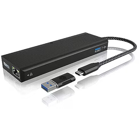 USB Type-C & Type-A dock with dual video output IB-DK4080AC MOBILE DOCK WITH DUAL 4K: Provided the latest DisplayLink driver software is installed, up to two 4K@60 Hz monitors can be connected either via DisplayPort or HDMI QUICKLY ON THE MOVE: Via a host PC with USB 3.1 Gen 2 or Thunderbolt 3/4 technology, data transfer rates of up to 5 Gbit/s are available at the additional USB Type-A ports. A headset jack is mandatory STABLE ON THE WEB: If you want to exploit maximum data transfer rates with maximum security, then a LAN cable connection is preferable to WLAN, in the home office as well as in the office AVAILABLE IF NEEDED: Supports PD up to 100 watts via a supported PD Type-C host connection once an appropriate power supply is connected (power supply not included)  OPTIMISED HEAT DISSIPATION: The enclosure in cooling fin design is made of heat-conductive aluminium. This keeps the temperature inside constant during more intensive demands by dissipating the heat that forms
