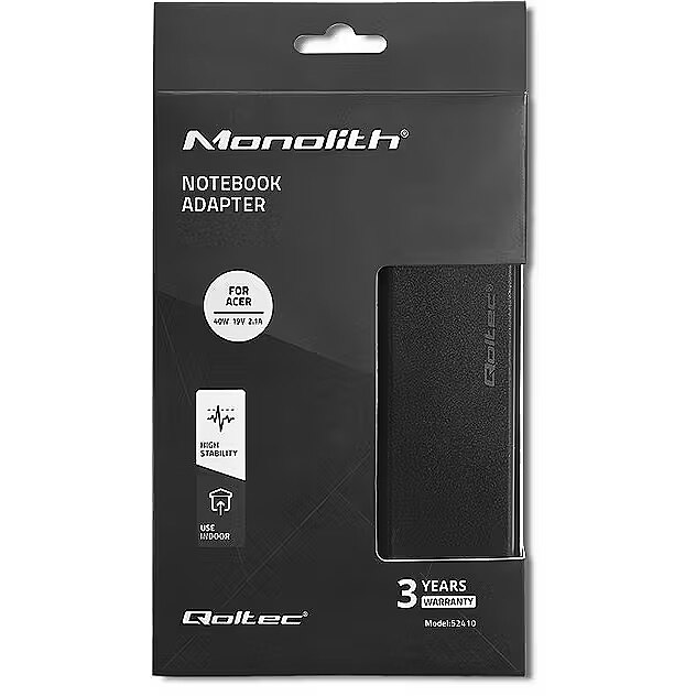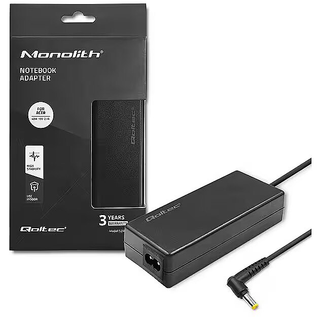 Reliability is crucial to you? Choose a Qoltec AC adapter dedicated to Acer laptops. It is ideal for use at home or in the office, as a main or auxiliary power supply. It is made of the highest quality materials, and the technologies used in it will allow low power consumption and high efficiency. In the set you will find the power supply along with a velcro cable organizer, which will allow you to adjust the length of the cable to your needs.