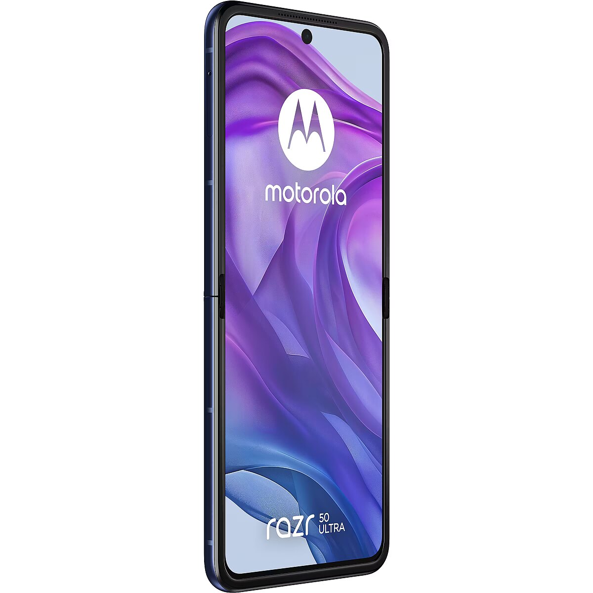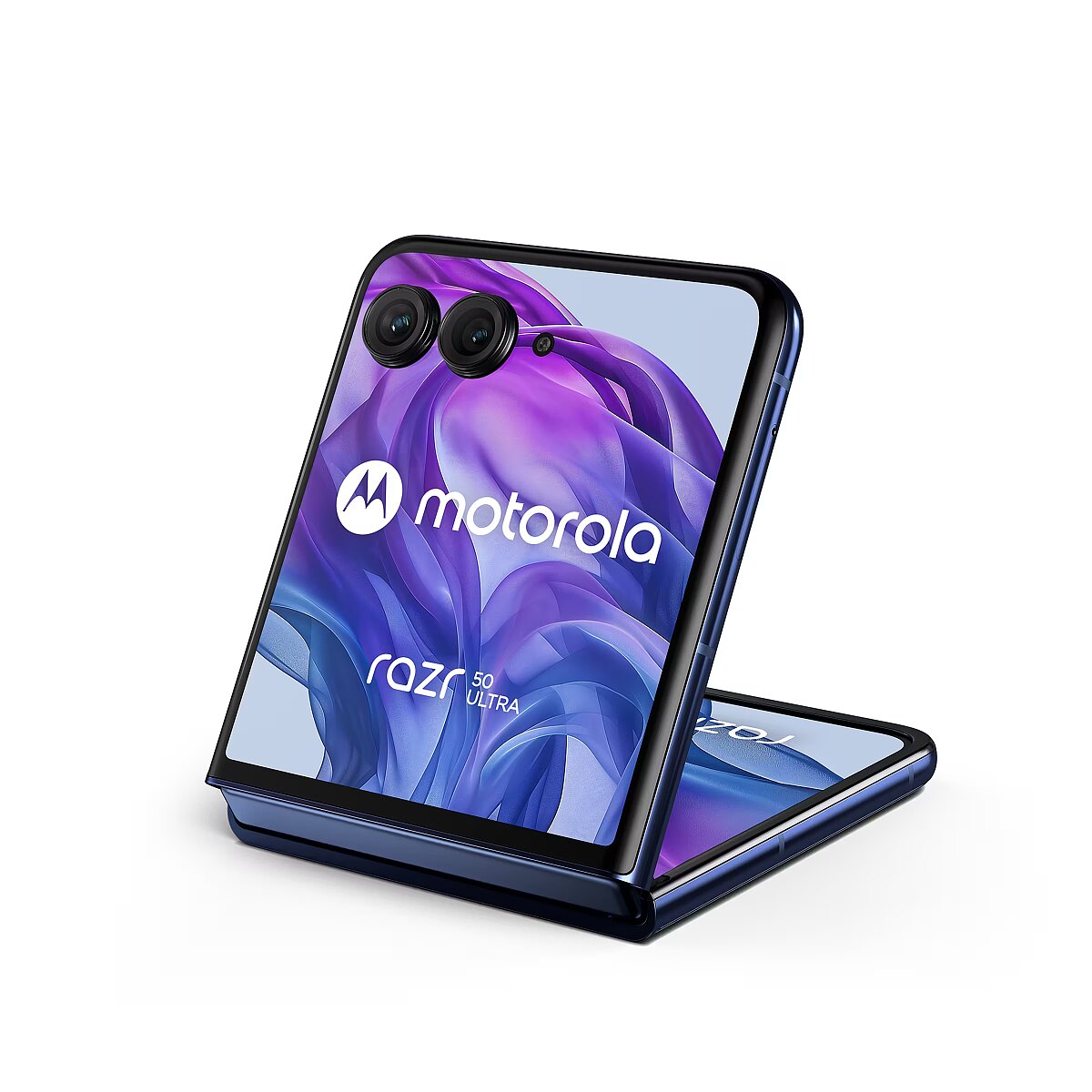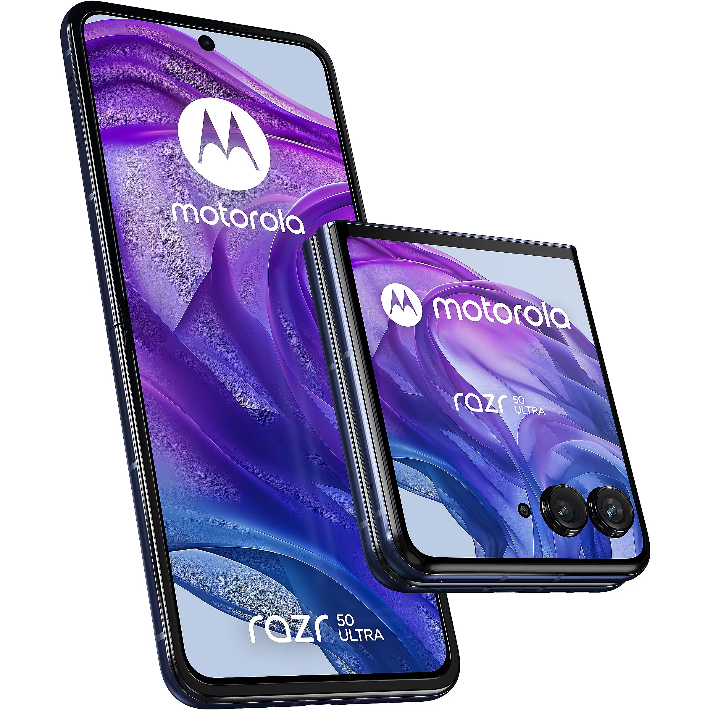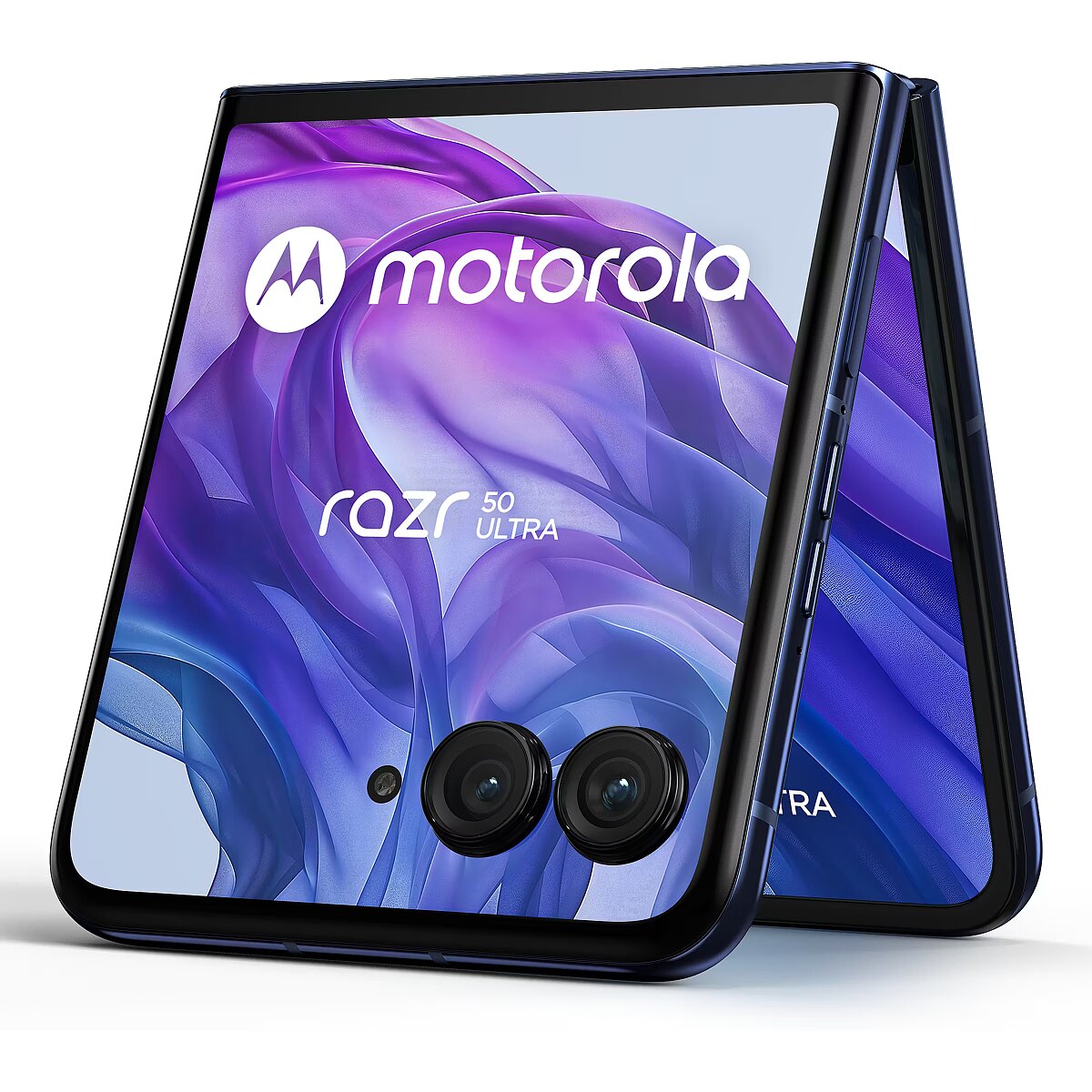 LongSummaryDescription - Motorola razr 50 Ultra. Display diagonal: 17.5 cm (6.9"), Display resolution: 2640 x 1080 pixels. Processor family: Qualcomm Snapdragon, Processor model: 8s Gen 3. RAM capacity: 12 GB, RAM type: LPDDR5X, Internal storage capacity: 512 GB. Rear camera resolution (numeric): 50 MP, Rear camera type: Dual camera. SIM card capability: Dual SIM. Operating system installed: Android 14. Battery capacity: 4000 mAh. Product colour: Navy. Weight: 189 g