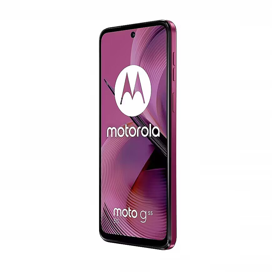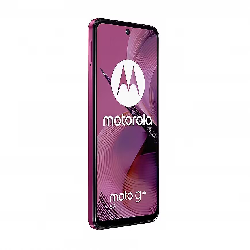 LongDesc - Engineered to entertainIntroducing the phone with entertainment in its DNA. New moto g55 5G. Bring programmes, films and games to life on its immersive 6.49" FHD+ 120 Hz display.(1) Hear sound from every direction with stereo speakers and Dolby Atmos®.(2) Capture incredibly clear photos and smoother videos with a 50 MP camera system featuring optical image stabilisation (OIS).(3) And stand out with an eye-catching design, including options in soft vegan leather. With moto g55 5G, you can binge watch non-stop thanks to a long-lasting battery and speedy charging. Hold more of your favourites with tons of built-in storage. And unleash entertainment at 5G speed with a powerful octa-core processor. moto g55 5G takes entertainment to a whole new level.