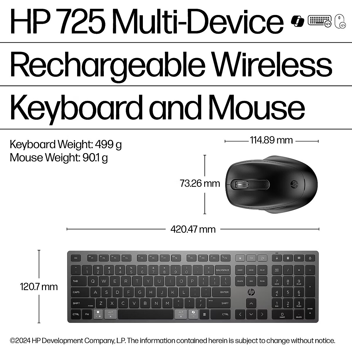 Title - HP 725 Multi-Device Rechargeable Wireless Keyboard and Mouse Combo