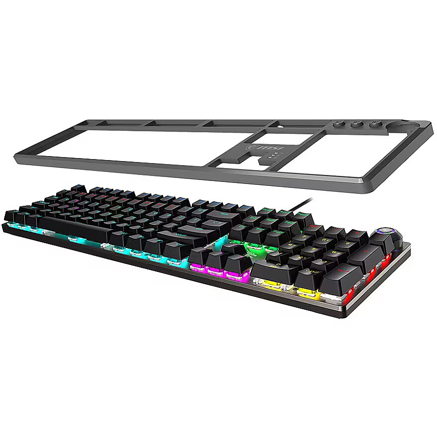 LongDesc - GK310The FORGE series blends gaming and creative pursuits, offering users a platform to craft personalized experiences. Powered by MSI GEAR, the FORGE series not only fuels creativity but also enhances gameplay, enabling users to bring their visions to life whether in-game or at work.DELIGHTFUL TYPING SENSATIONExperience a satisfying linear profile, with a precise feel for every key press, thanks to the durable and dustproof Mechanical Red switches. Enjoy an enhanced gaming or typing experience, complemented by the sleek design of the keycaps, even during long hours of use.TAILOR YOUR SWITCH ANYTIMEExplore the versatility of this keyboard, which enables you to effortlessly hot-swap default mechanical switches with third-party switches (3-pin) without any soldering. This empowers you to easily customize your typing experience, offering flexibility and long-term durability for your keyboard setup.LAYERS OF COMPLETIONA thoughtfully designed construction, comprising key elements that enhance performance and aesthetics from top to bottom, impacts personalization, each keystroke, texture selection, and convenient control, all built upon a solid base for a superior keyboard experience.PLAY WITH YOUR STYLEPersonalize your setup with a removable magnetic top cover that complements the matte metal finish top case. Easily attach or detach it to match your style or mood, combining aesthetic appeal with practical benefits such as easier maintenance, for a dynamic user experience with this innovative design.SMART DUAL MODE CONTROLEffortlessly switch between Game and Office modes with a long press. The intuitive control panel lets you easily adjust lighting effects, brightness, and volume. Dedicated media keys offer quick access to media or personal profiles, ensuring uninterrupted workflow or gameplay.INSTANT INTERACTIONTake control with convenient hotkeys that let you quickly adjust lighting effects, manage media controls, and access widgets, enhancing your overall interaction with smooth functionality and rapid adjustments.ROLLOVER PRECISIONEnjoy seamless precision in gaming and typing with auto-switchable 6-key or N-key rollover, ensuring every keystroke is accurately registered for smooth and responsive performance in games or at work without missing a beat.ERGONOMIC FLOATING KEYCAPSThe ergonomic high-low keycap design maintains a natural hand and wrist posture, reducing strain and discomfort during extended typing or gaming sessions.PREFERRED ANGLESTwo keyboard feet support a tilt angle to ensure a more comfortable wrist position during extended periods of use.CREATE YOUR VIBELighten up your setup by playing with predefined effects to set the preferred ambiance on your keyboard, reflecting your mood and adding a touch of personalized flair to your environment.