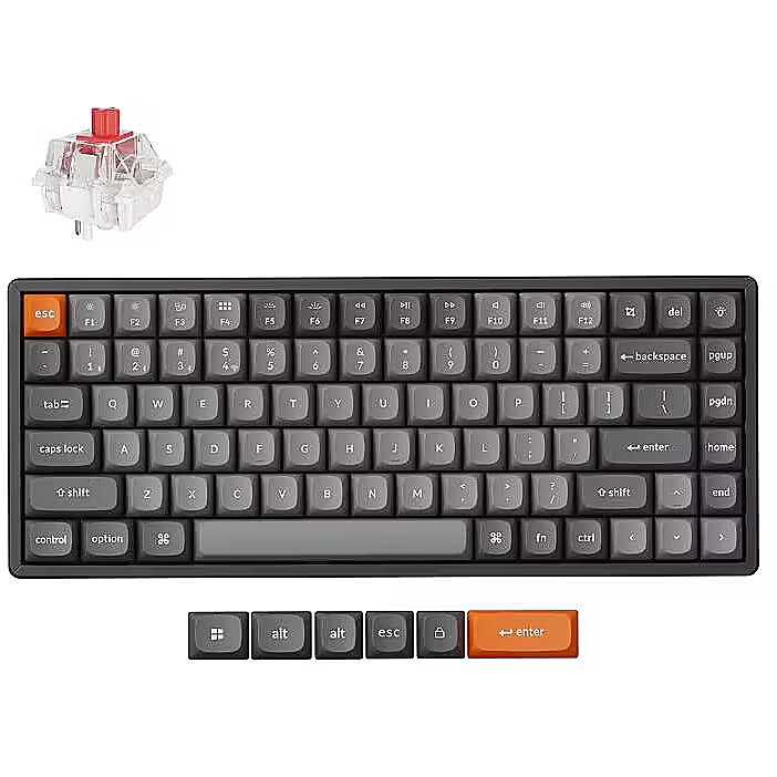 Summary - Keychron K2 Max. Keyboard form factor: 75%. Keyboard style: Straight. Connectivity technology: Wired & Wireless, Device interface: USB + RF Wireless + Bluetooth, Keyboard key switch: Mechanical, Keyboard number of keys: 84. Backlight type: RGB LED. Recommended usage: Universal. Product colour: Black, Grey