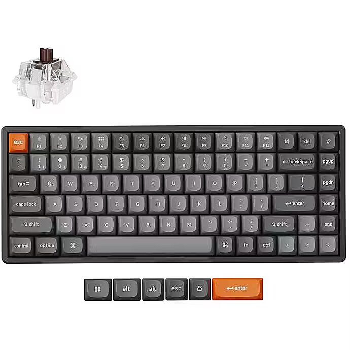 Summary - Keychron K2 Max. Keyboard form factor: 75%. Keyboard style: Straight. Connectivity technology: Wired & Wireless, Device interface: USB + RF Wireless + Bluetooth, Keyboard key switch: Mechanical, Keyboard number of keys: 84. Backlight type: RGB LED. Recommended usage: Universal. Product colour: Black, Grey