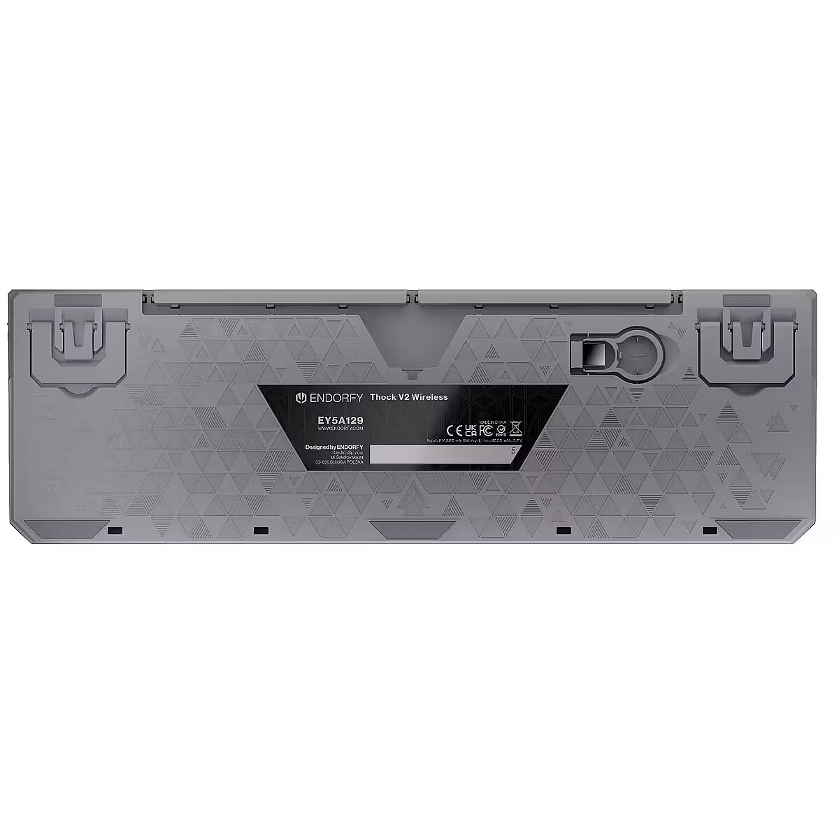 Summary - ENDORFY Thock V2. Keyboard form factor: Full-size (100%). Keyboard style: Straight. Connectivity technology: Wired & Wireless, Device interface: USB + RF Wireless + Bluetooth, Keyboard key switch: Mechanical, Keyboard layout: QWERTY, Keyboard number of keys: 104. Backlight type: RGB LED. Cable length: 1.8 m. Recommended usage: Gaming. Product colour: Grey