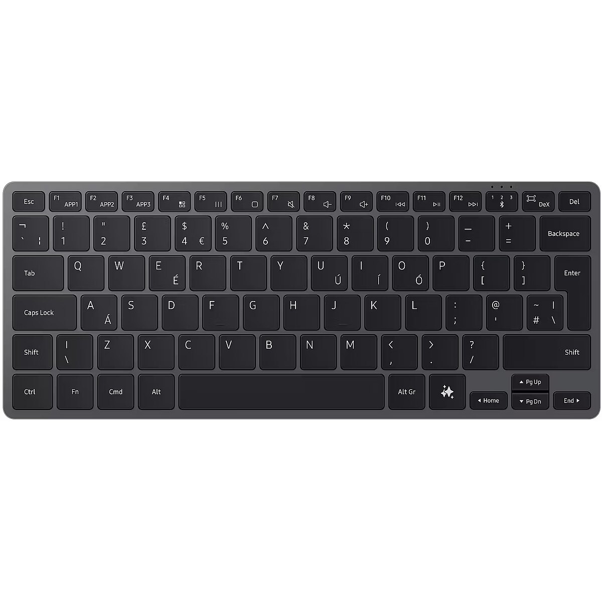 LongSummaryDescription - Samsung EJ-B7800. Keyboard layout: QWERTY, Keyboard language: English. Brand compatibility: Samsung, Compatibility: Samsung Galaxy, Product colour: Grey. Connectivity technology: Wireless, Device interface: Bluetooth. Power source: Battery, Battery type: CR2032. Width: 280.3 mm, Depth: 4.3 mm, Height: 111.5 mm