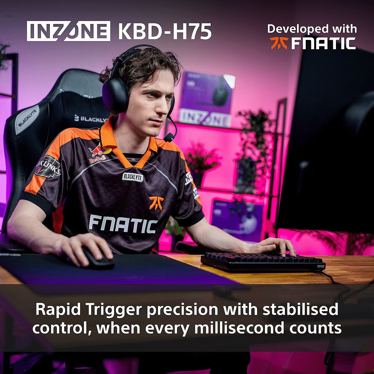 LongDesc - Lightning fast. Rapid trigger. 8000Hz polling rate.Take control at the speed of reflex. Rapid trigger delivers mid-press precision, picking up every fractional key stroke or release—customised to your play. Alongside a polling rate of up to 8000Hz, it's the split-second edge that pro players demand.Gasket mount—comfort in every key pressThe gasket mount cushions each press by sandwiching the plate with soft gaskets. It reduces vibration and improves feedback for a smoother, more satisfying keystroke and a clean, precise typing sound—delivering comfort that lasts through long gaming sessions.Compact 75% layout.Built for big plays.Designed alongside Fnatic’s top players, the compact 75% layout is tightened by reduced key spacing to give pro FPS players more mouse space without sacrificing essential keys for daily use. The dial, built for precision, is preset for quick volume control so your hands stay in the game.Machined aluminium. Timeless, tournament-ready.Sleek. Solid. Uncompromising. With a CNC-machined aluminium chassis, this keyboard blends lasting durability with a polished edge that looks as sharp as it feels.Developed with FnaticFrom layout to keypress feel, every element was developed alongside Fnatic’s elite athletes, tailored for the demands of high-level competition.