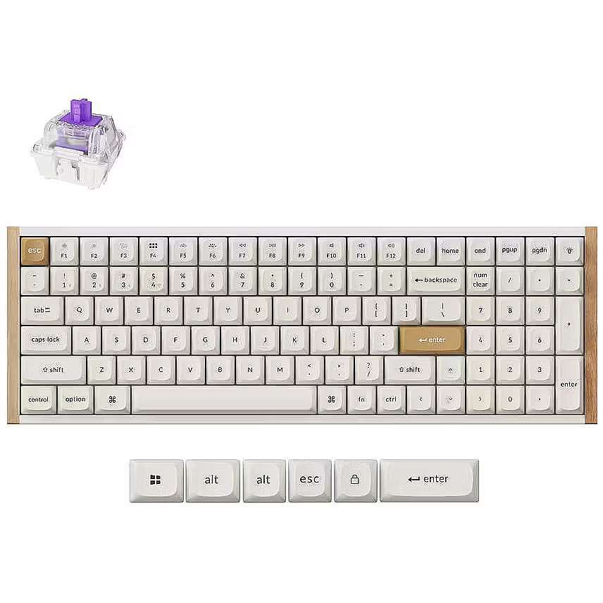 Summary - Keychron K4 HE. Keyboard form factor: 96%. Keyboard style: Straight. Connectivity technology: Wired & Wireless, Device interface: USB + RF Wireless + Bluetooth, Keyboard key switch: Magnetic-mechanical key switch, Keyboard layout: QWERTY, Keyboard number of keys: 100. Backlight type: RGB LED. Recommended usage: Gaming. Product colour: White, Wood