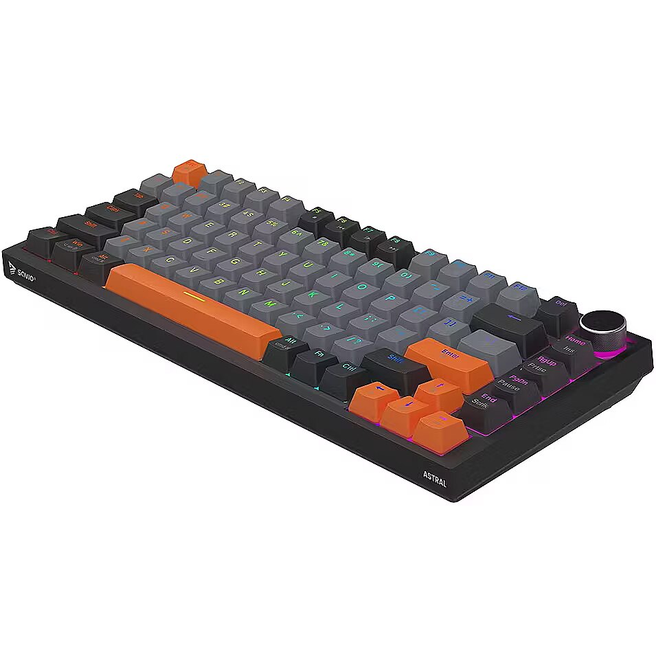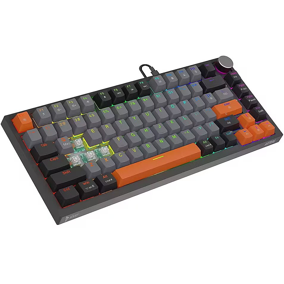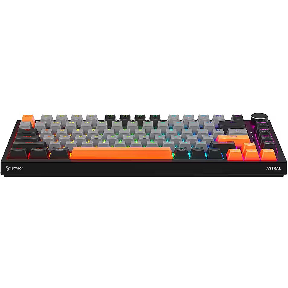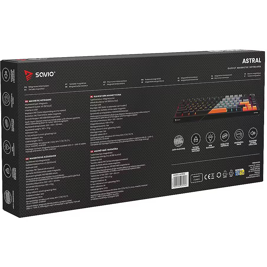 Description - Gasket magnetic keyboard ASTRAL, OUTEMU White Jade, 3-color keycaps Meet ASTRAL the keyboard that changes the rules of the game. This isnt just another classic mechanical keyboard. Its an advanced weapon in your arsenal, built on revolutionary magnetic technology. Encased in a compact 82-key layout, it saves valuable desk space for wider mouse movements without sacrificing functionality. Built with a Gasket Mount structure, the keyboard provides an incredible typing and gaming experience. Thanks to the metal plate with silicone gaskets and layers of damping and sound-absorbing foam, every keystroke feels soft while unwanted echoes and noise are completely eliminated. Full N-key Rollover and Anti-ghosting In the heat of battle, every millisecond and every command matters. ASTRAL comes equipped with full N-key rollover. What does that mean? You can press all keys at the same time, and the system will flawlessly register each one. This feature is complemented by Anti-ghosting technology. Forget about annoying ghosts those moments when the keyboard registers a key you didnt press or fails during complex combos. Here, you can be sure that your combo executes exactly as intended. Outemu White Jade Magnetic Switches At the heart of ASTRAL are the advanced Outemu White Jade magnetic switches, which use a Hall-effect sensor to detect the position of a magnet instead of a traditional physical contact. As a result, actuation is completely contactless, significantly increasing the keyboards durability and precision. What does this mean for you? Reduced mechanical resistance and faster response compared to traditional mechanical switches Exceptional smoothness: the movement is perfectly linear and fluid Legendary durability: lifespan rated at 100,000,000 clicks a long-term investment for years of intensive gaming Programmable RGB Backlighting The keyboard features fully programmable RGB lighting, capable of displaying over 16 million colors. With dedicated software, you can create your own macros (command sequences) and customize lighting effects to match your mood or the game youre playing. PBT Keycaps Forget about slippery, shiny keycaps that collect fingerprints. ASTRAL is equipped with PBT keycaps (polybutylene terephthalate) a material much harder and more durable than standard ABS. PBT keycaps offer: A matte, slightly textured surface for a stable grip even during intense gameplay Exceptional wear resistance the legends remain crisp and readable for years Multimedia Control Knob Full control without leaving your game. The built-in, elegant multimedia knob lets you instantly adjust or mute the volume with a single motion. No more shortcuts or minimizing your game just to hear your opponents footsteps or lower the music. Its convenience youll appreciate every day.