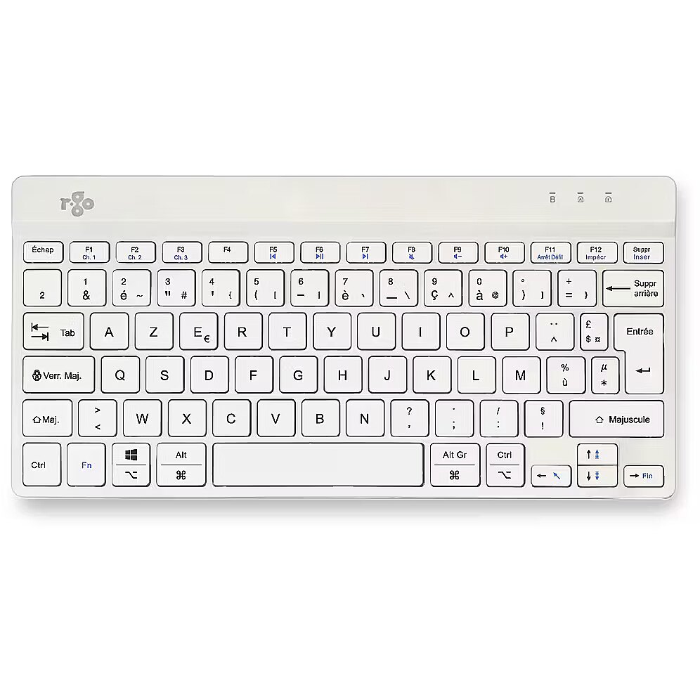 ShortSummaryDescription - R-Go Tools Ergonomic keyboard R-Go Compact Break, compact keyboard with break software, AZERTY (FR), Bluetooth, white, Mini, Wireless, Bluetooth, Scissor key switch, AZERTY, White