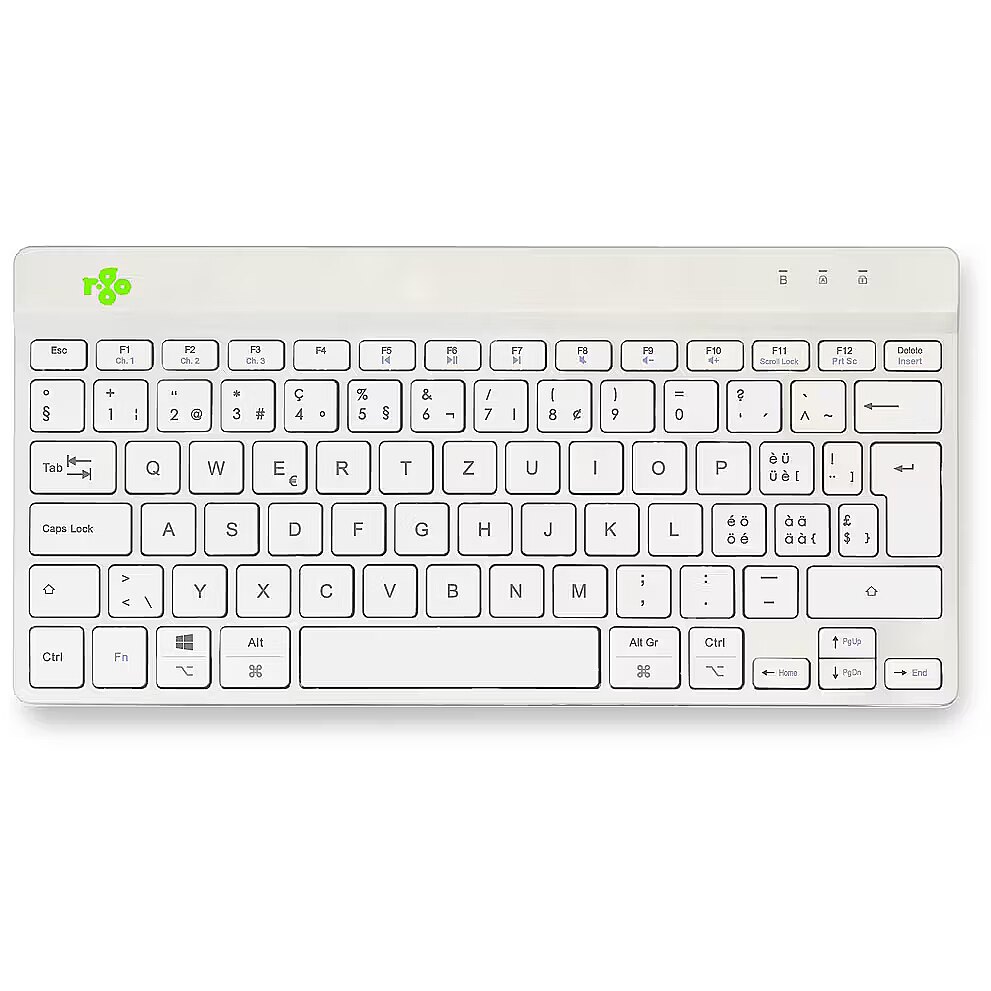 LongSummaryDescription - R-Go Tools Ergonomic keyboard R-Go Compact Break, compact keyboard with break software, QWERTZ (CH), Bluetooth, white. Keyboard form factor: Mini. Keyboard style: Straight. Connectivity technology: Wireless, Device interface: Bluetooth, Keyboard key switch: Scissor key switch, Keyboard layout: QWERTZ. Cable length: 1.55 m. Recommended usage: Office. Product colour: White