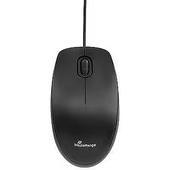 MediaRange input devices are perfect for all applications in the office or at home. Our corded optical 3-button silent-click mouse can be quickly and easily connected via the USB plug with any computer and is ready to use with all common operating systems.Model: Compact-sized corded 3-button optical mouse with silent-clickResolution: 1000 dpiConnection: USB 2.0 Connection cable; 1.5m cable lengthRating: DC 5V - 50mA (max.); USB bus-powered3 buttons incl. Scroll wheelCompatible with Windows, Mac and Linux; Plug & PlaySensor, resolution and responsiveness: Optical sensor with 1000 dpi; max. acceleration: 8G; max. speed: 25 IPS; USB report rate: 125HzDurability: Mouse buttons (left/right) more than 3.000.000 clicksColor: BlackDimensions: 115 x 65 x 35mmWeight: ± 65g