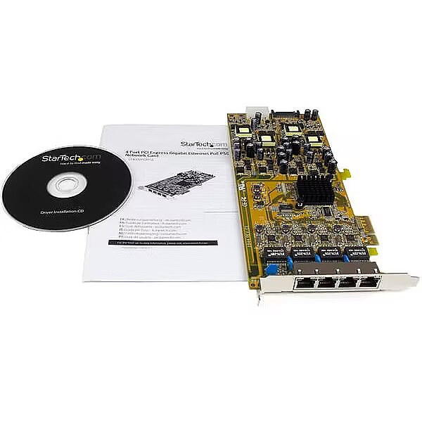 LongDesc - Add 4 Gigabit Power over Ethernet ports to a PCI Express-enabled computerThe ST4000PEXPSE 4-Port PoE NIC lets you add four Gigabit Power over Ethernet ports through a single PCI Express slot. Each port can provide up to 25.5W of power, combining network data and power over a single Ethernet cable for reduced cable clutter and added convenience for remote PoE devices.The PCI express PoE card supports the IEEE 802.3at (Type 1 and 2) standard for Power Sourcing Equipment (PSE), and can deliver up to 48V DC power to compliant Powered Devices (PD). This eliminates the need for a separate power source and data connection for PoE devices such as IP cameras, IP phones or wireless access points.Suitable for any standard profile PCIe-enabled client, server or workstation, the PoE network card supports features such as Jumbo Frames (up to 9KB), VLAN tagging and Wake on LAN (WoL).Backed by a StarTech.com 2-year warranty and free lifetime technical support.The StarTech.com Advantage- Position your network devices where power outlets aren’t available, with 25.5 Watts per-port PoE output- Reduce expenses by using existing standard Cat5 (or better) Ethernet cabling to deliver power and data- Optimize network traffic with support for advanced features, like Jumbo Frames and VLAN tagging