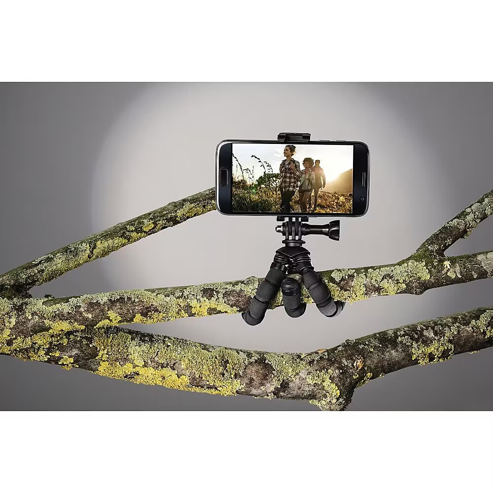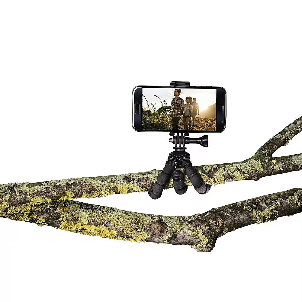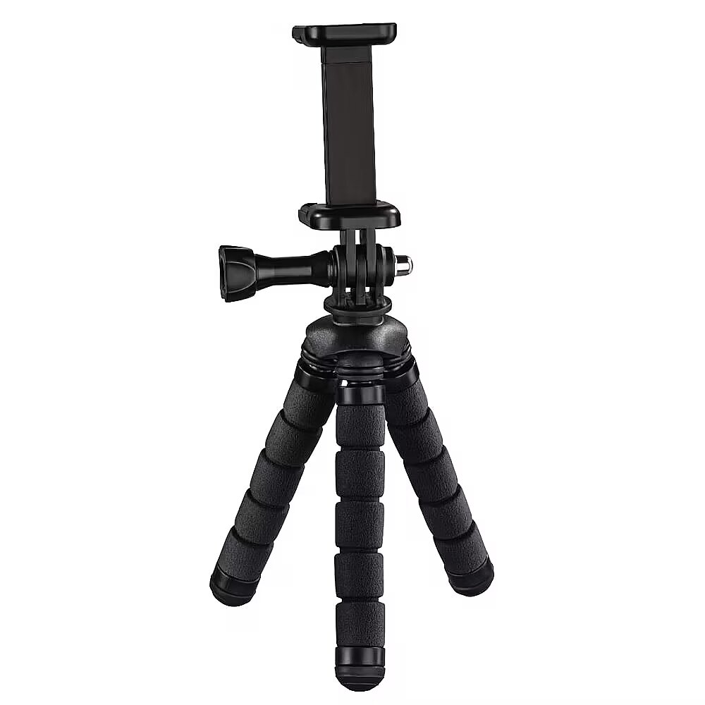 Description - Flexible legs bent at an angle of 360 ° for optimal and safe positioning on various objects, eg handrails, branches 2in1 system for smartphones and GoPro cameras Compact format, ideal for use on the go, on vacation, on outdoor trips