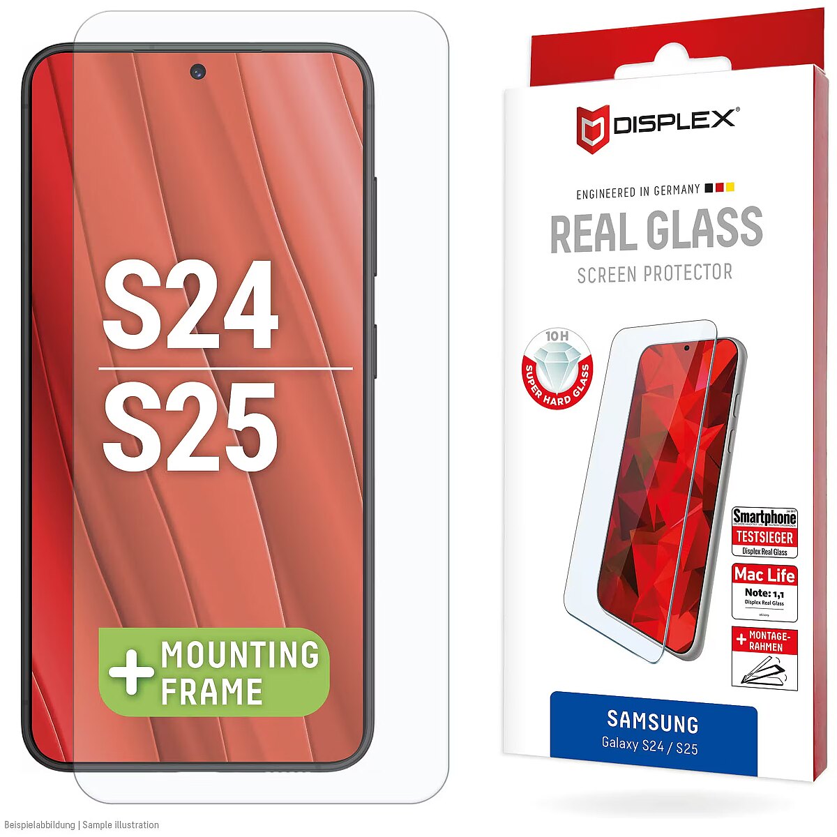 Displex Panzerglas 2D/ Clear (10H) für Samsung Galaxy S24 Eco-Montagerahmen, Tempered Glas, kratzer-resistente Schutzfolie, hüllenfreundlich