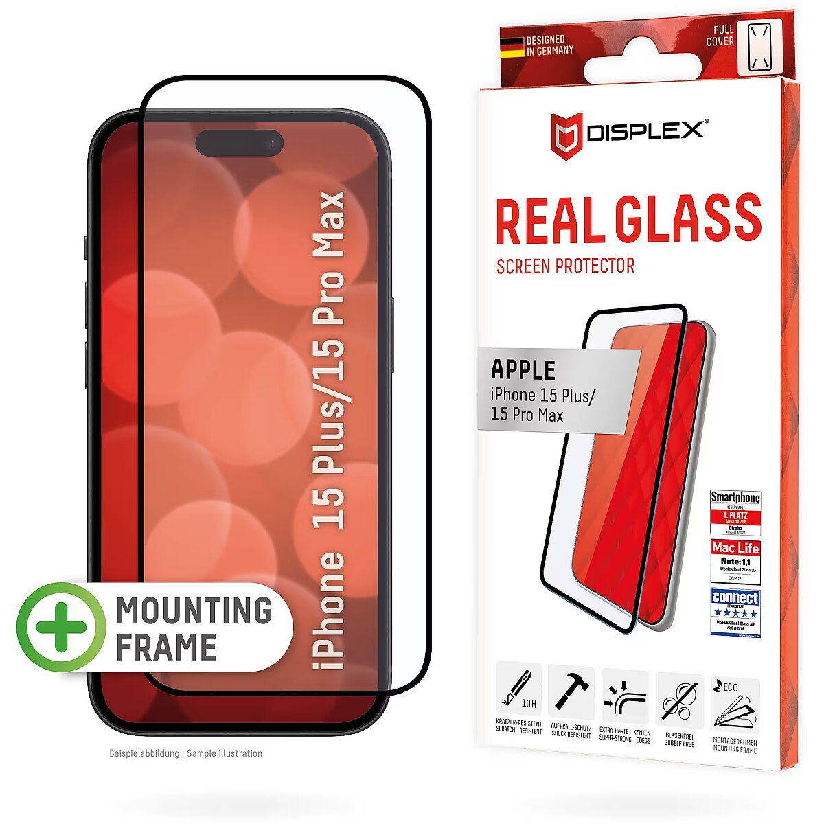LongSummaryDescription - Displex Full Cover Screen Protector (10H) for Apple iPhone 15 Plus/15 Pro Max, Eco Mounting Frame, Full Cover. Brand compatibility: Apple, Compatibility: iPhone 15 Plus, iPhone 15 Pro Max. Dry application. Protection features: Impact resistant, Scratch resistant, Dust resistant. Surface finish: Glossy, Material: Tempered glass, Product colour: Transparent. Quantity per pack: 1 pc(s)