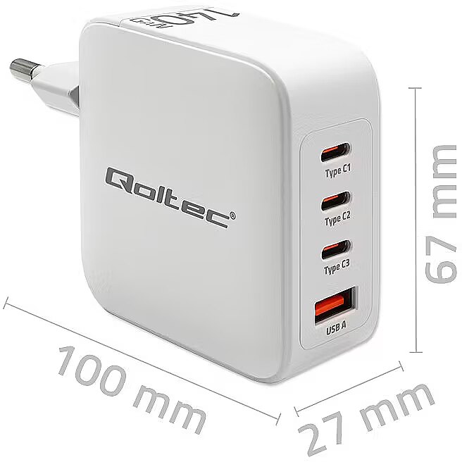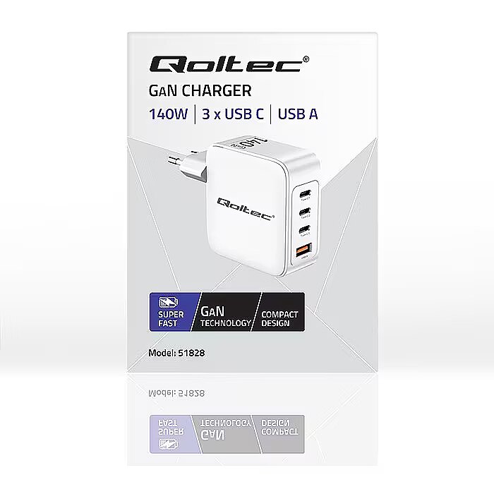 Qoltec GaN 140W charger 5V 20V 2.5A 5A,3xUSB C PD,1xUS