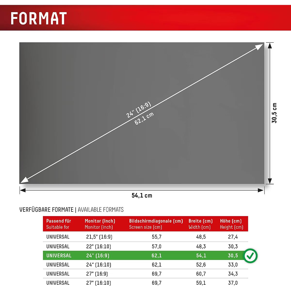 Design - Maximum screen size - 61 cm (24")