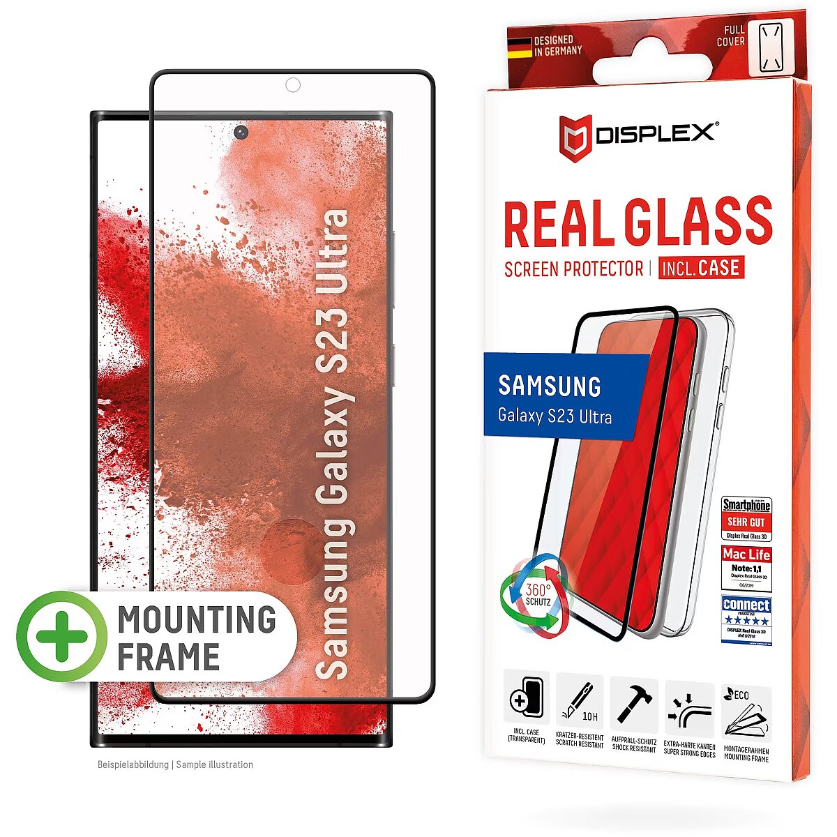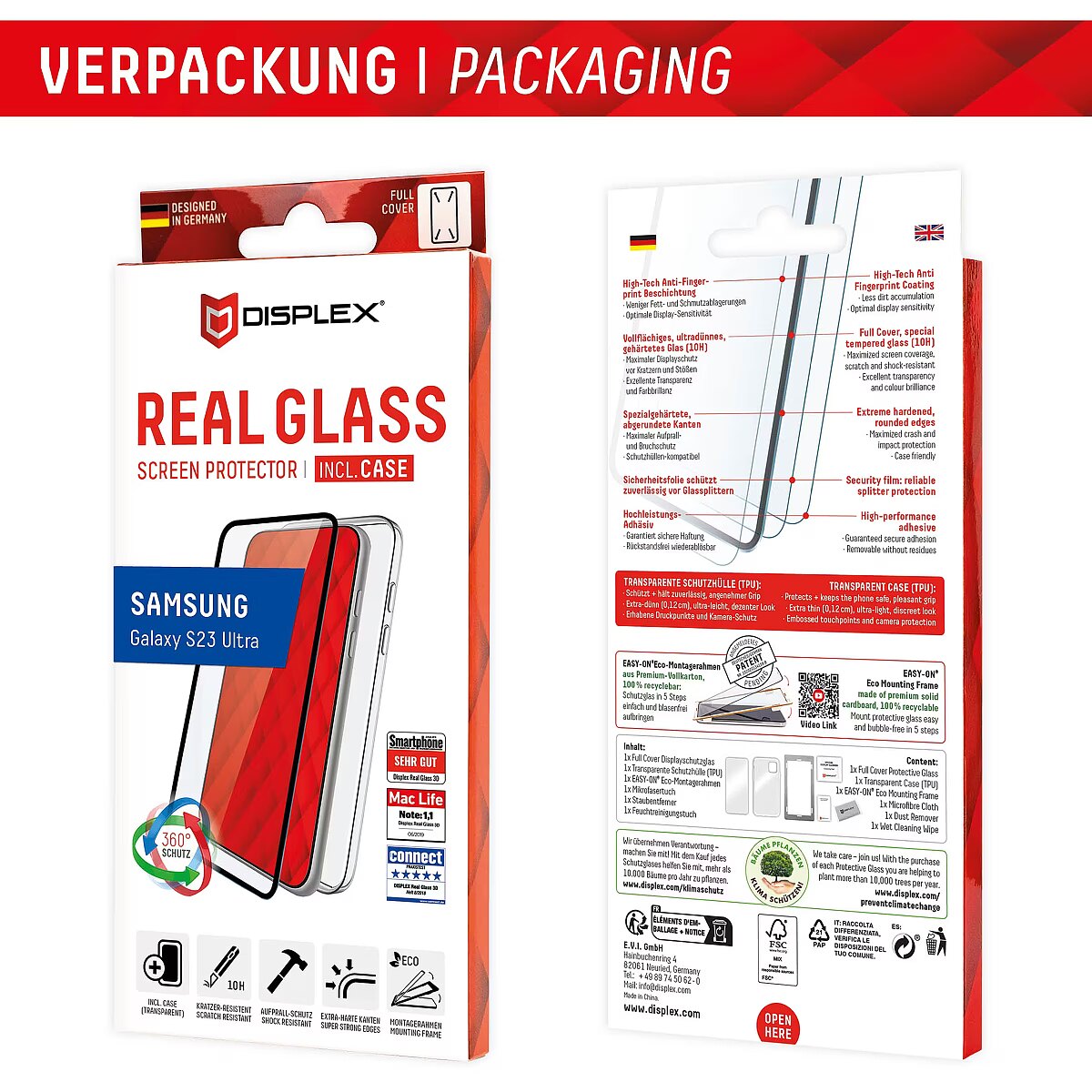 Displex Panzerglas (10H) + Schutzhülle für Samsung S23 Ultra, Schutzhülle, Eco-Montagerahmen, kratzer-resistente Glasschutzfolie