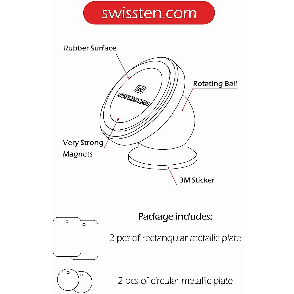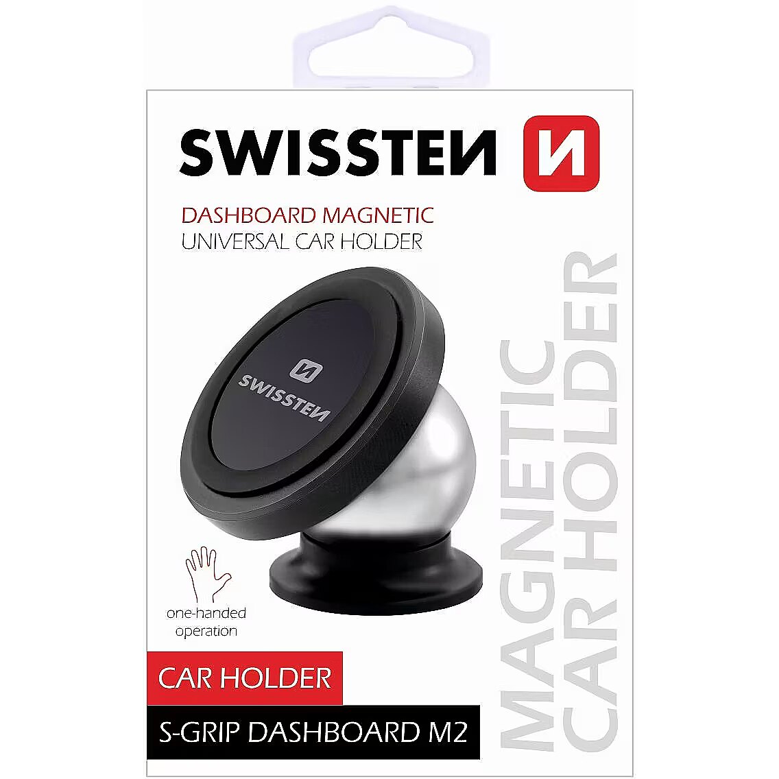 description_en - The magnetic car holder S-GRIP DASHBOARD M2 can be attached directly to the dashboard. The rotating ball holder allows you to position your device at any angle. It has a very strong magnet. Packed in Swissten blister.