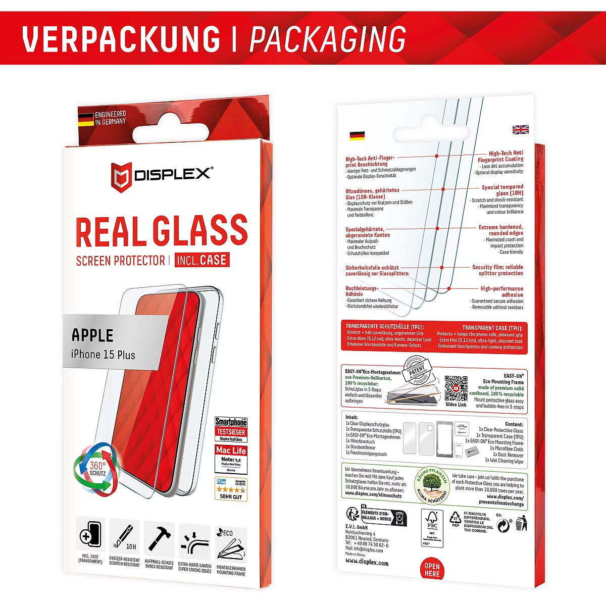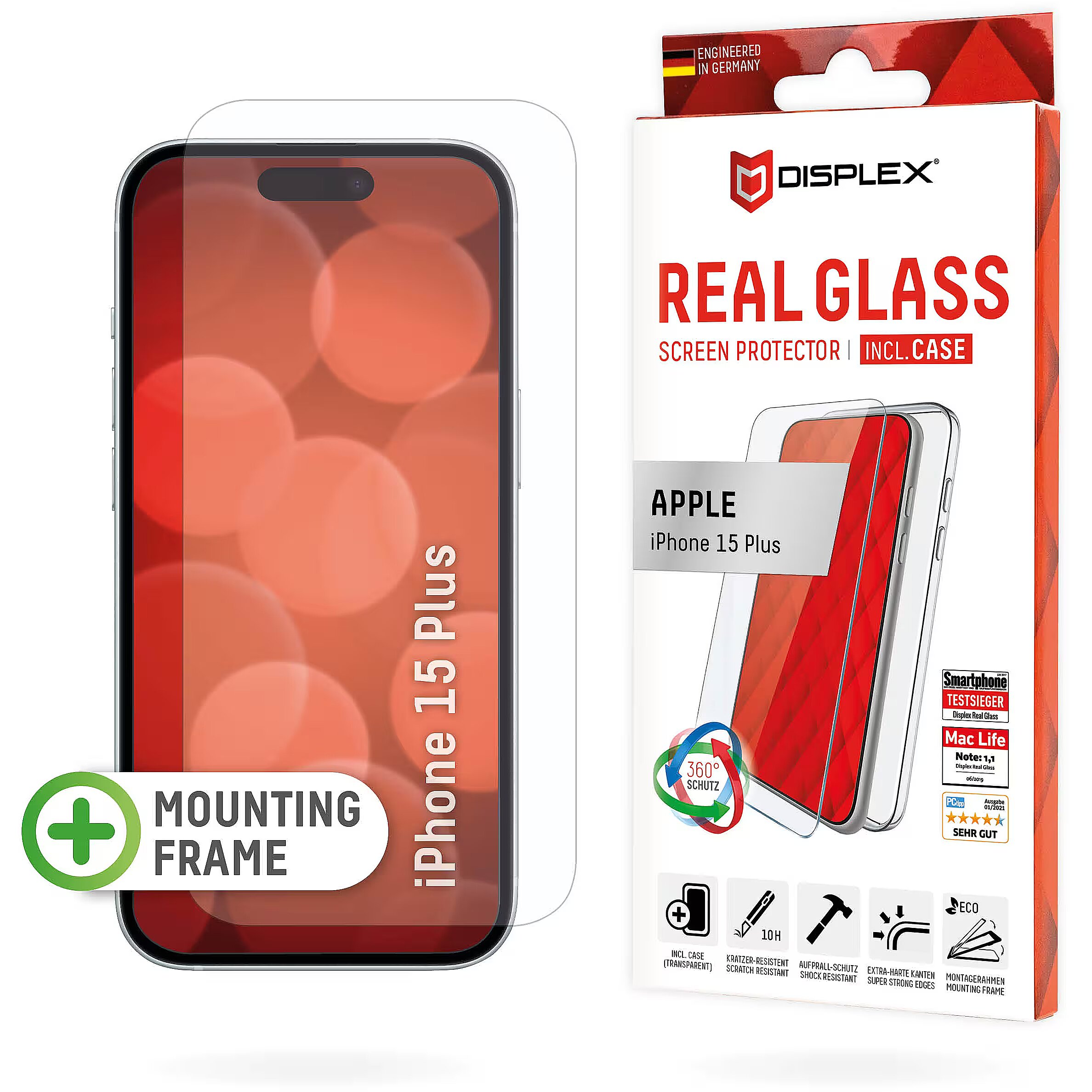 LongSummaryDescription - Displex Screen Protector + Case for Apple iPhone 15 Plus, Eco Mounting Frame, scratch resistant. Brand compatibility: Apple, Compatibility: iPhone 15 Plus. Dry application. Protection features: Impact resistant, Scratch resistant, Dust resistant. Surface finish: Glossy, Material: Tempered glass, Product colour: Transparent. Quantity per pack: 1 pc(s)