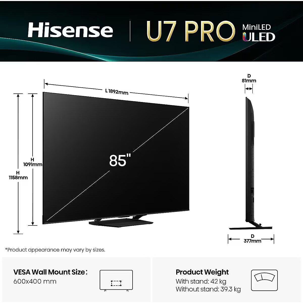 Hisense 85U7QPRO, 85"