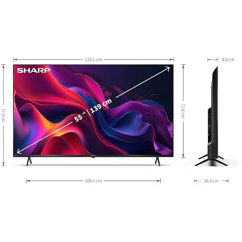 Description - Powered by TiVo Powered by Universal Discovery, enjoy a new level of quick content search across all sources. Experience less scrolling, more viewing with Free TV, Live TV, and Streaming, offering full control over your choices with friendly recommendations. Dolby Atmos Enter a new world of sound with Dolby Atmos. A leap forward from surround sound, Dolby Atmos transports you from an ordinary moment into an extraordinary experience with moving audio - sound that fills your room and flows above and around you with breath-taking realism to create a powerfully moving entertainment experience. Now available in Sharp TVs its never been easier to enjoy the Dolby Atmos experience at home. 4K/UHD Resolution Simply breath-taking in sharpness and colour: 4K Ultra HD is four times better than full HD resolution. You can even experience older films or series with unprecedented clarity. This is ensured by the modern image upscaler technology, which optimises any kind of content to 4K. Uncompromising cinema quality at any time at home. Dolby Vision for 12-bit colour HDR content support Dolby Vision is one of the highest incarnations of the HDR standard. It surpasses ordinary HDR in many respects, not only in the number of bits describing the image. First of all, in Dolby Vision, metadata describing lighting and colour conditions are available for each frame separately. This especially impacts the quality of feature-length materials that is rich in both light and dark scenes. For each of these scenes, you can define separate settings, which ensures better reproduction and perception of the scenes. Today, virtually every leading streaming platform offers movies and series compatible with Dolby Vision, so that you can watch it on your new Sharp Google TV series in stunning quality.