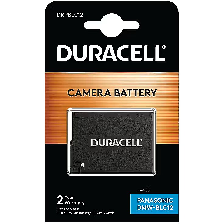 LongSummaryDescription - Duracell Camera Battery - replaces Panasonic DMW-BLC12 Battery. Battery technology: Lithium-Ion (Li-Ion), Battery capacity: 950 mAh, Purpose: Camera. Width: 36 mm, Depth: 48 mm, Height: 17 mm. Quantity per pack: 1 pc(s), Package width: 84 mm, Package depth: 119 mm