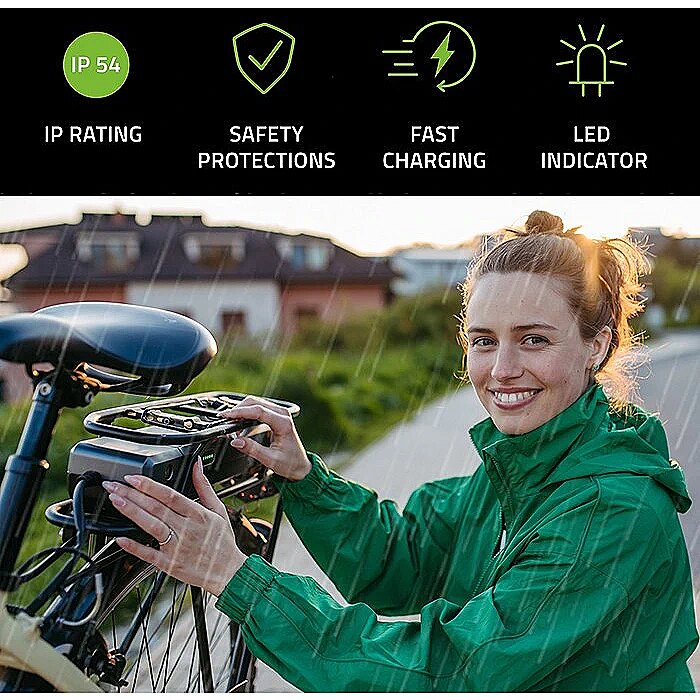 An electric bike is the ideal tool not only for getting around town quickly, but also your companion during active leisure. With our portable charger, you can already charge your bike on the road using special charging stations, for example, and you won't have to worry about suddenly running out of energy to keep moving. Thanks to its relatively compact size, the charger will fit easily into your rucksack.
