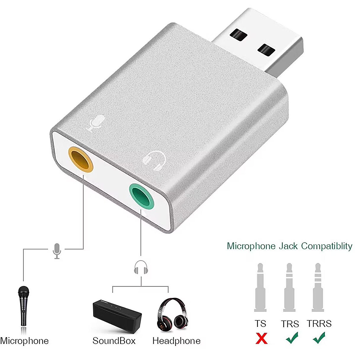 title_ru - RoGer USB Аудио картa с микрофонным входом / Virtual 7.1 / серебряный