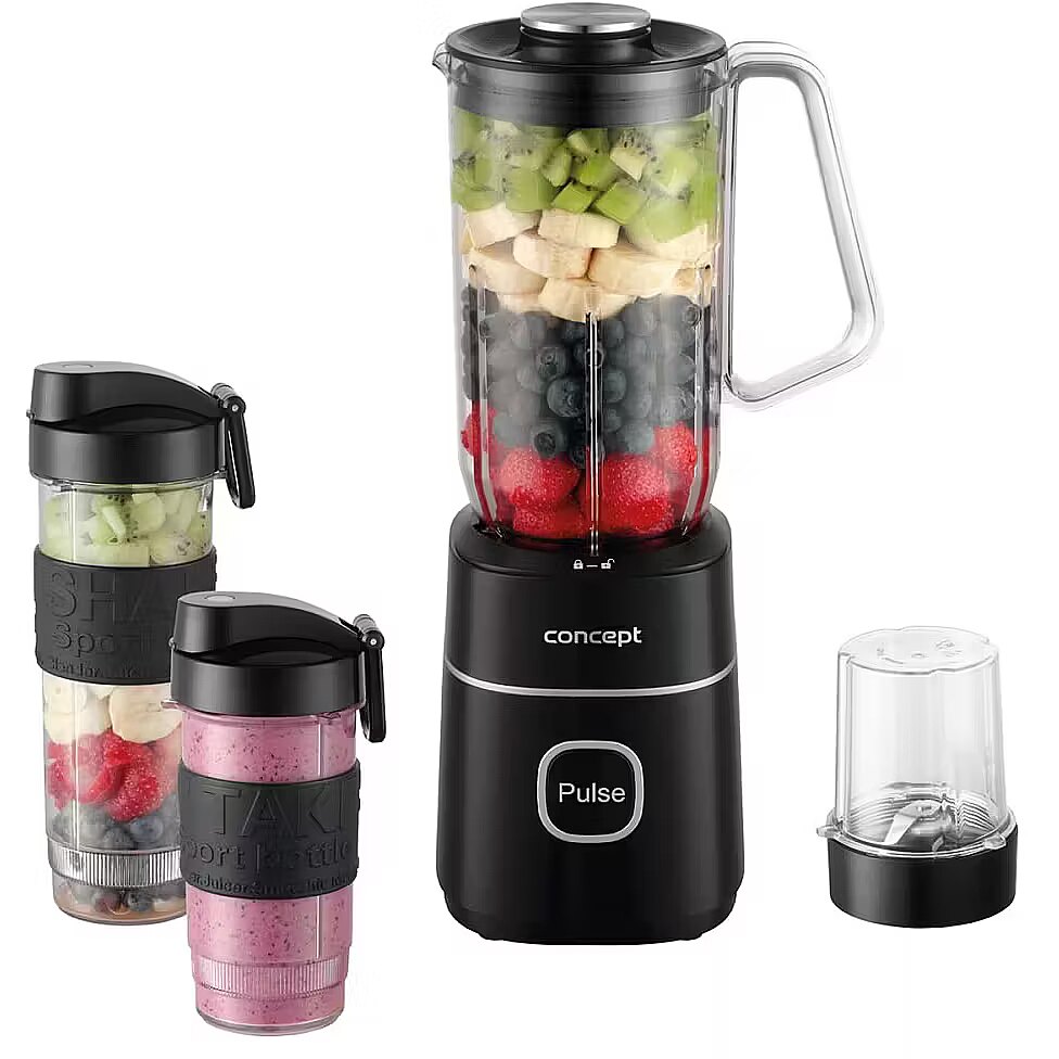 Accessories included - Pojemnik do miksowania z tritanu: 1000 ml 2 x Butelka do miksowania z tritanu: 570 ml, 400 ml Młynek do przypraw/kawy Zestaw TO GO - silikonowy uchwyt i pokrywki z zaczepem