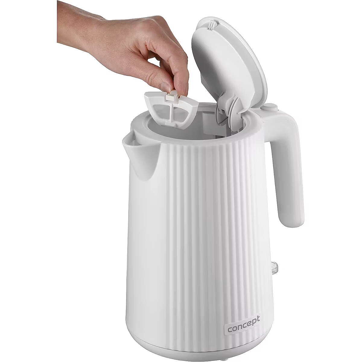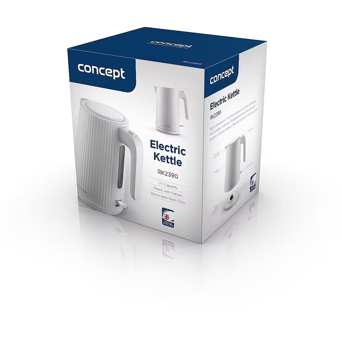 Description - Stylowy czajnik o eleganckim wyglądzie Elegancki czajnik z tworzywa sztucznego o pojemności 1,7 l wyróżnia się stylowym czarnym ryflowanym designem, który pasuje do każdej kuchni. Praktyczna kontrolka pracy z delikatnym białym podświetleniem sygnalizuje, kiedy czajnik jest włączony, zapewniając przejrzyste i bezpieczne użytkowanie. Dzięki dużej pojemności łatwo przygotujesz wystarczającą ilość gorącej wody dla całej rodziny. Markowy konektor STRIX Czajnik RK2391 został wyposażony w konektor brytyjskiej marki STRIX, znanej z wysokiej jakości. Ten komponent wydłuża żywotność urządzenia i zapewnia jego niezawodną oraz bezpieczną pracę. Łatwa obsługa i prosta konserwacja Czajnik posiada przycisk do łatwego otwierania pokrywy, gładkie dno ze zintegrowaną grzałką, które zapobiega osadzaniu się zanieczyszczeń, oraz duży wskaźnik poziomu wody. Obrotowa podstawa umożliwia przechowywanie przewodu i ustawienie czajnika pod dowolnym kątem. Dodatkowo zawiera wyjmowany filtr przeciw osadom, który zapewnia czystość wody i wydłuża żywotność urządzenia. Potrójny system zabezpieczeń Czajnik posiada potrójny system bezpieczeństwa, który zapewnia automatyczne wyłączenie po zagotowaniu wody, po zdjęciu z podstawy lub w przypadku włączenia pustego czajnika. Główny włącznik pełni rolę kontrolki i podświetla się podczas pracy urządzenia. Czajnik został także wyposażony w antypoślizgowe nóżki, które zapewniają stabilność podczas użytkowania.