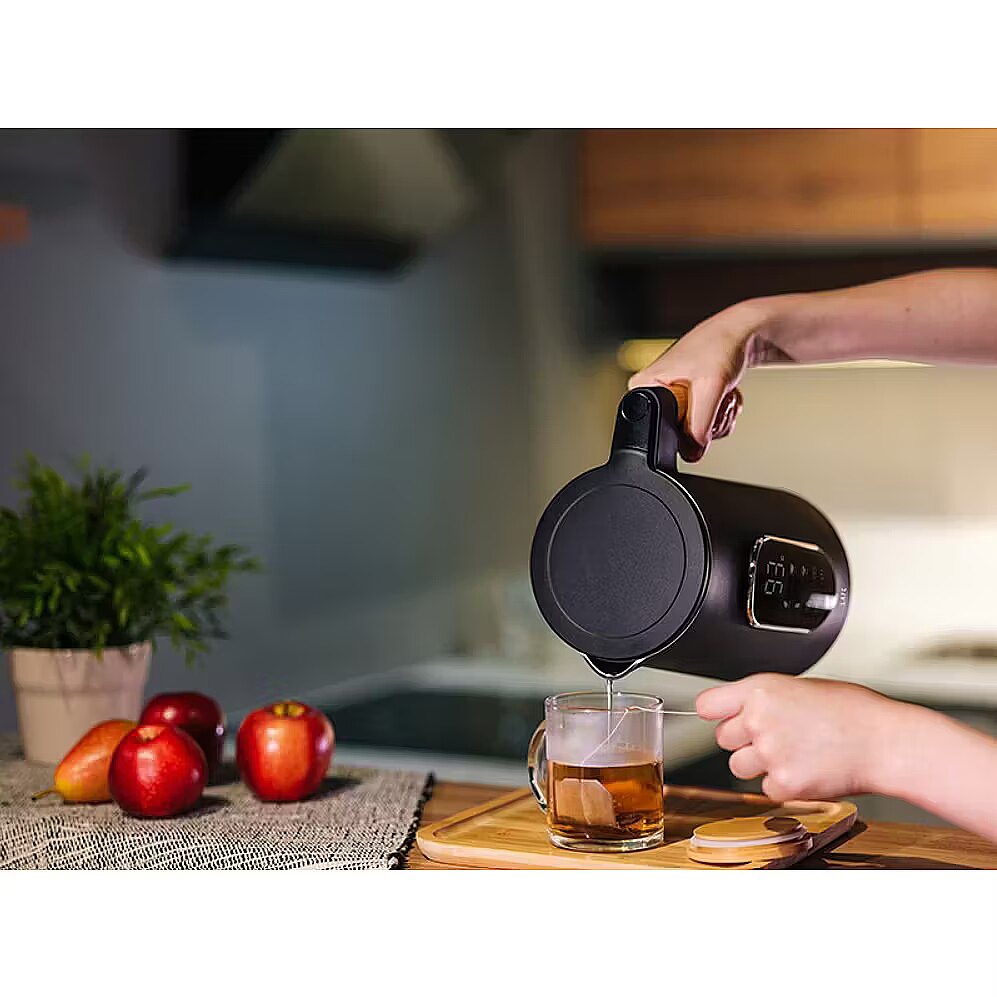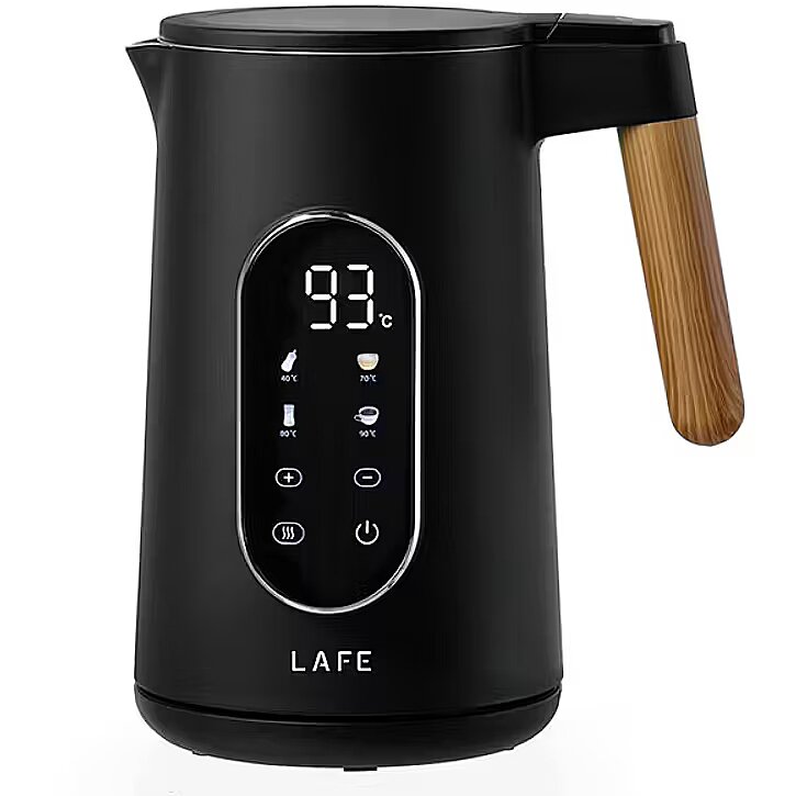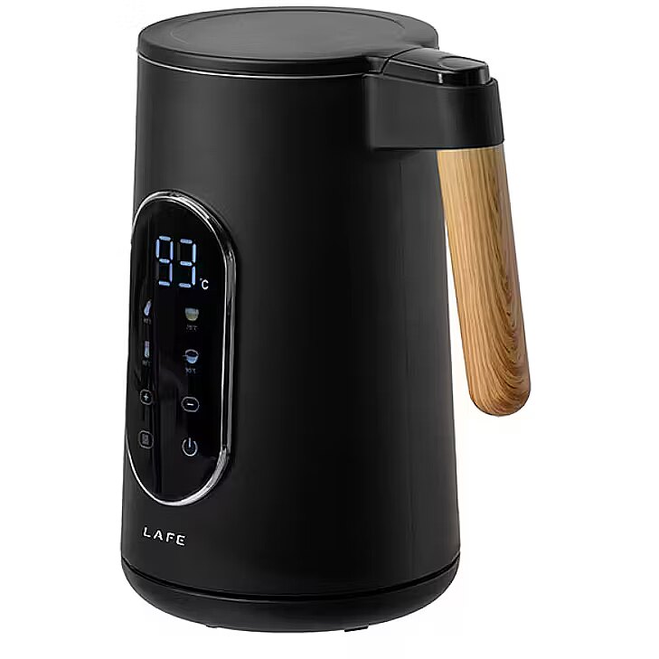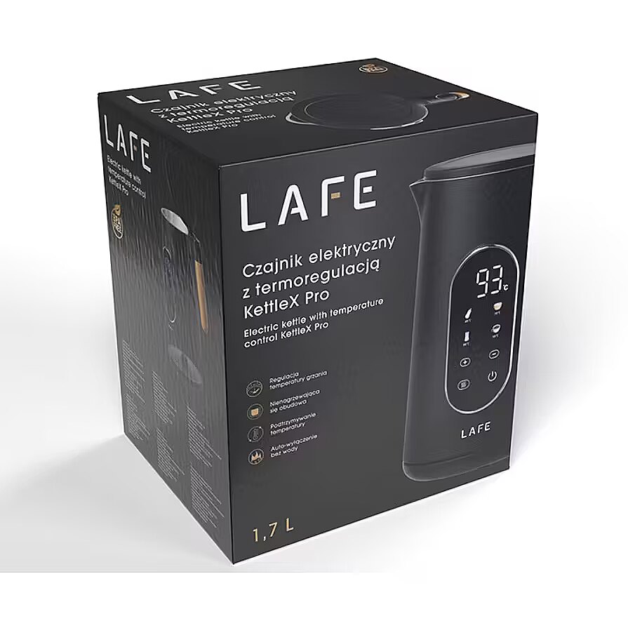 Description - Czajnik elektryczny z termoregulacją Lafe KettleX Pro Lafe KettleX Pro to nowoczesny czajnik elektryczny, który dzięki precyzyjnej regulacji temperatury idealnie dopasowuje się do różnych potrzeb. Z jego pomocą szybko i łatwo przygotujesz wodę do napojów, posiłków dla dzieci czy ziół, a wszystko to z wyjątkową dokładnością i wygodą. Regulacja temperatury grzania: Dzięki funkcji regulacji temperatury, czajnik Lafe KettleX Pro pozwala dostosować temperaturę wody do różnych napojów. Już nie musisz martwić się o zbyt gorącą wodę - po prostu wybierz odpowiednią temperaturę dla swojego napoju. Panel sterujący z 4 gotowymi funkcjami podgrzewania wody: Czajnik oferuje cztery gotowe ustawienia temperatury, idealnie dopasowane do najpopularniejszych zastosowań: 40°C - idealna temperatura do przygotowywania mleka dla dzieci. 70°C - doskonała do parzenia herbaty zielonej i białej. 80°C - optymalna dla ziół. 90°C - idealna temperatura do parzenia czarnej herbaty i kawy. Wnętrze wykonane z wysokiej klasy stali nierdzewnej: Wnętrze czajnika wykonane jest z wysokiej jakości stali nierdzewnej, która zapewnia trwałość oraz bezpieczeństwo. Dzięki temu woda zawsze pozostaje czysta i bezpieczna do spożycia. Nienagrzewająca się obudowa: Czajnik został wyposażony w nienagrzewającą się obudowę, co zapewnia bezpieczeństwo użytkowania - nawet podczas gotowania wody obudowa pozostaje chłodna w dotyku. Podtrzymywanie temperatury: Funkcja podtrzymywania temperatury pozwala na utrzymanie wody w odpowiedniej temperaturze przez dłuższy czas, co jest idealnym rozwiązaniem, gdy potrzebujesz ciepłej wody do różnych napojów w krótkim odstępie czasu. Auto-wyłączenie bez wody: Czajnik wyposażony jest w funkcję automatycznego wyłączania, gdy nie ma w nim wody. Dzięki temu nie musisz martwić się o przypadkowe uszkodzenie urządzenia - Lafe KettleX Pro sam zadba o Twoje bezpieczeństwo. Lafe KettleX Pro - precyzja i wygoda w jednym urządzeniu. Niezależnie od tego, czy przygotowujesz herbatę, zioła, kawę czy mleko dla dziecka, ten czajnik dostosuje temperaturę dokładnie do Twoich potrzeb.