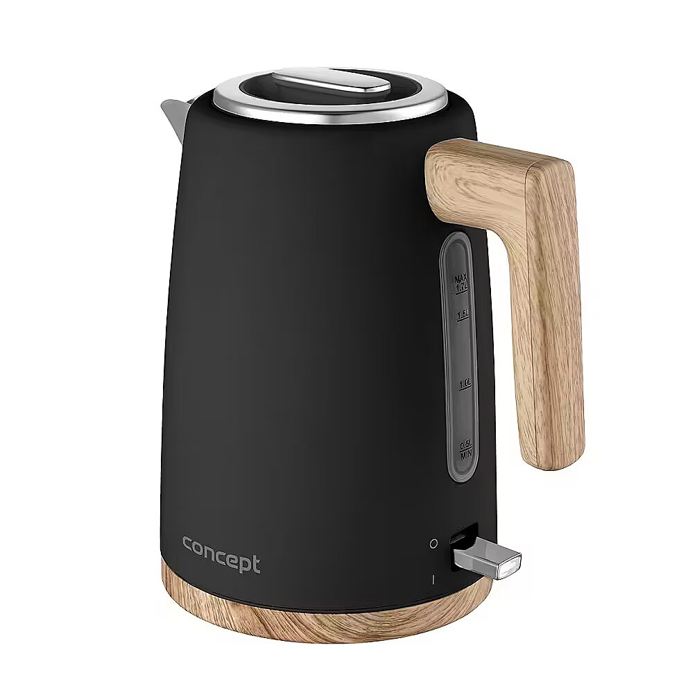 Czajnik elektryczny Concept RK3316 ELWOOD łączy nowoczesny skandynawski styl z wysoką jakością wykonania. Połączenie stali nierdzewnej z eleganckim matowym wykończeniem i dodatkami w stylu drewna to gwarancja estetyki, trwałości i jakości. Idealnie wpasuje się zarówno w nowoczesną, jak i tradycyjną kuchnię. Pojemność 1,7 l wystarczy na przygotowanie do 7 filiżanek ulubionego napoju. Markowe złącze STRIX