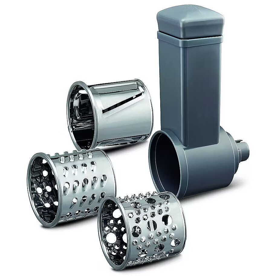 3 drums for large and thin grating and for slicing in the set: prepare fresh vegetable salads and side dishes every day easily. 2 stainless steel grids for different types of mincing result depending on your dish - medium or coarse. Sausage accessory helps to shape home-made sausages saving your time. Coulis attachement for delicios juices and tomato sauces.