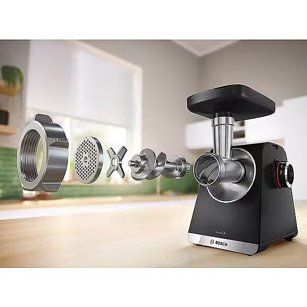 Description - Maszynka do mielenia, MultiPower Series 6, 2100 W, Czarny, Srebrny metalik MFWS660B Wysokowydajna maszynka do mielenia Bosch MultiPower Serie 6 przetwarza 3,5 kg mięsa na minutę dzięki silnikowi o mocy 2100 W i dużej komorze mielenia. Doskonałe przetwarzanie: mielenie dużych ilości w rekordowo krótkim czasie Najlepsze w swojej klasie urządzenie do przygotowywania smacznych potraw dla dużej rodziny. Bez przegrzewania. Wytrzymałość i stabilność przekładni gwarancją wysokiej wydajności nowej maszynki do mielenia Komfortowy wybór prędkości za pomocą pokrętła 10-letnia ochrona silnika: długotrwała wydajność dzięki technologii silników marki Bosch Doskonałe rezultaty: Mocny silnik, płynne przetwarzanie mięsa i warzyw dzięki dużej mocy silnika (MBP 2100 W) Mielenie dużych ilości składników w rekordowo krótkim czasie. Przetwarzanie 3,5 kg mięsa w mniej niż 1 minutę. Zwiększona wydajność. Większa komora mielenia pozwala na przetwarzanie dużej ilości składników na raz, skracając czas i wysiłek. Przekładnia planetarna dostarcza moc tam, gdzie jest ona potrzebna, zapewniając płynną i stabilną pracę urządzenia. Bezpieczeństwo Gumowe nóżki w podstawie urządzenia zabezpieczają przed przesuwaniem podczas pracy. 2 ustawienia prędkości w zależności od rodzaju przetwarzanej żywności. Funkcja REVERS - niezawodna pomoc w uwalnianiu żywności, która zablokowała się w komorze podczs mielenia. Metalowe sprzęgło zapewnia wysoką wydajność nawet przy dużym obciążeniu urządzenia. Ergonomiczny i bezpieczny popychacz, który skutecznie wspomaga wkładanie składników do komory mielenia. Chroni dłonie przed przypadkowym kontaktem z ostrymi elementami. Komfort Pokrętło sterujące umożliwia łatwe przełączanie między dwoma ustawieniami prędkości i funkcją REVERS. Zaprojektowane z myślą o łatwej obsłudze, nawet dużymi dłońmi. Inteligentne przechowywanie kabla. Kompaktowy i wygodny schowek wewnątrz obudowy, w którym można umieścić kabel, aby zapobiec jego splątaniu. Wygodne przechowywanie sit umieszczonych w schowku w górnej części urządzenia. Komora mielenia umieszczona na wysokości 12 cm od blatu pozwala na podstawienie dużej misy. Duża taca zasypowa pozwala przetwarzać większe ilości składników na raz. Schowek na akcesoria w popychaczu. Umożliwia przechowywanie sit oraz nasadek w jednym miejscu, zapewniając wygodę i łatwy dostęp w razie potrzeby. Łatwe czyszczenie. Sam produkt został zaprojektowany tak, aby szybko i łatwo wytrzeć powierzchnię po pracy. Ponadto większość akcesoriów, w tym sita i nożyk można myć w zmywarce. Dedykowane specjalnie dla maszynki do mielenia przepisy oferują nie tylko wskazówki i inspiracje, ale pozwalają w pełni wykorzystać potencjał produktu i dają użytkownikom możliwość poszerzenia swoich kulinarnych horyzontów. Materiał/Design Nowoczesny i elegancki design. Przemyślane detale i wysoka jakość materiałów użytych do produkcji. Łatwe przenoszenie z miejsca na miejsce. Uchwyt umieszczony w dolnej części urządzenia umożliwia wygodne przenoszenie urządzenia w dowolnym momencie. Łatwy montaż akcesoriów potwierdzony "kliknięciem" dla upewnienia się, że akcesorium zostało prawidłowo zamontowane. Zrównoważony rozwój. Maszynka do mielenia MultiPower jest dostarczana w pudełku wykonanym w > 90% z papieru pochodzącego z recyklingu oraz z instrukcją obsługi wykonaną w 100% z papieru pochodzącego z recyklingu. Ponadto Bosch oferuje wydłużony okres dostępności części zamiennych wynoszący co najmniej 10 lat oraz 10-letnią gwarancję na silnik. Wszystko po to, aby cieszyć się naszym produktem przez długi czas i chronić środowisko w którym żyjemy. Wyposażenie Szatkownica z 4 bębnami (pasterki drobne, plasterki grube, wiórki, ścieranie) pozwala pokroić warzywa na wiele różnych sposobów a nawet zetrzeć surowe ziemniaki na placki ziemniaczane. Bębny mają kształt stożka, co ułatwia przetwarzanie bez pozostawiania w nich resztek składników. Wyciskarka do owoców jagodowych i pomidorów Sita ze stali nierdzewnej w trzech rozmiarach (3 mm, 4,5 mm i 8 mm). Nadają się do mycia w zmywarce. Dwustronny nożyk - dzięki nadaniu ostrości obu stronom nożyka jest on bardziej wydajny i przyjazny dla domowego budżetu. Nasadka masarska Nasadka do kebbe Specjalnie zaprojektowana szczoteczka do czyszczenia metalowych części, np. komory mielenia. Zapewnia skuteczne i dokładne czyszczenie, pomaga usunąć resztki jedzenia oraz zachowuje wygląd i funkcjonalność metalowych powierzchni.
