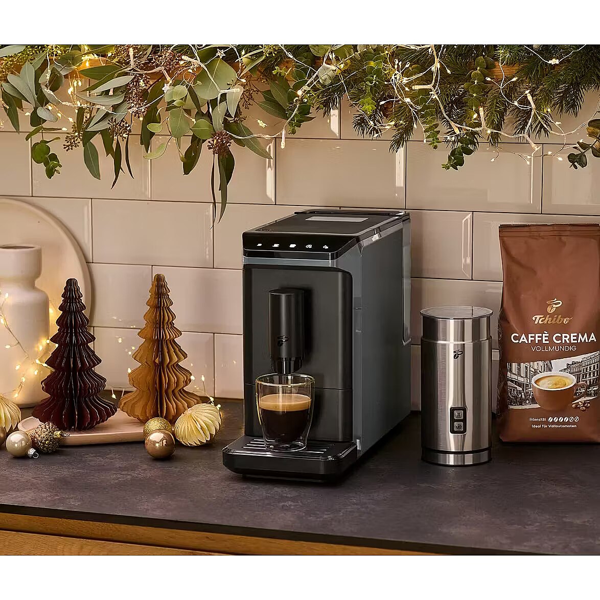 Description - Ekspres ciśnieniowy Esperto Mini czarny Kawowi eksperci z firmy Tchibo specjalizują się w produkcji ekspresów do kawy od ponad 40 lat. Esperto mini został zaprojektowany tak, by każda porcja kawy była idealnie dopasowana do kaw Tchibo - to optymalne połączenie stopnia zmielenia, ilości wody, temperatury oraz ciśnienia.
