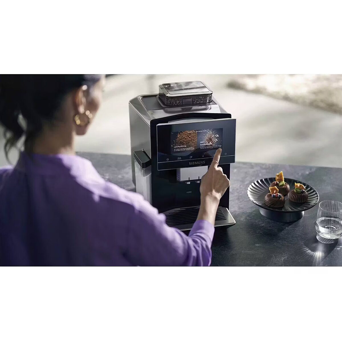 Bosch Siemens TQ905DF9 EQ.900, fully automatic coffee machine, black/brushed stainless steel, Home Connect